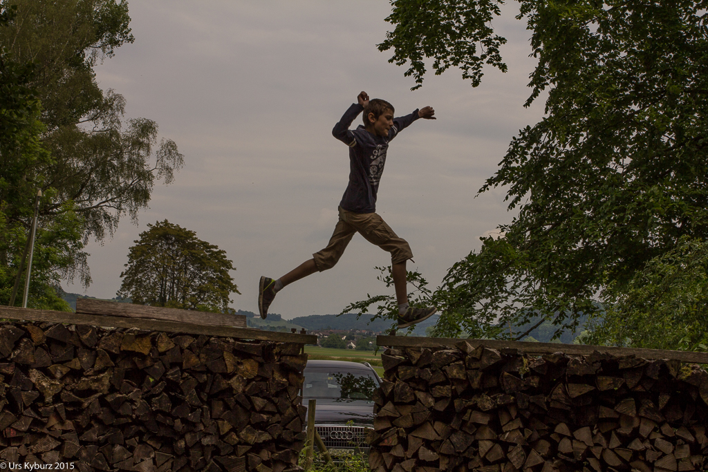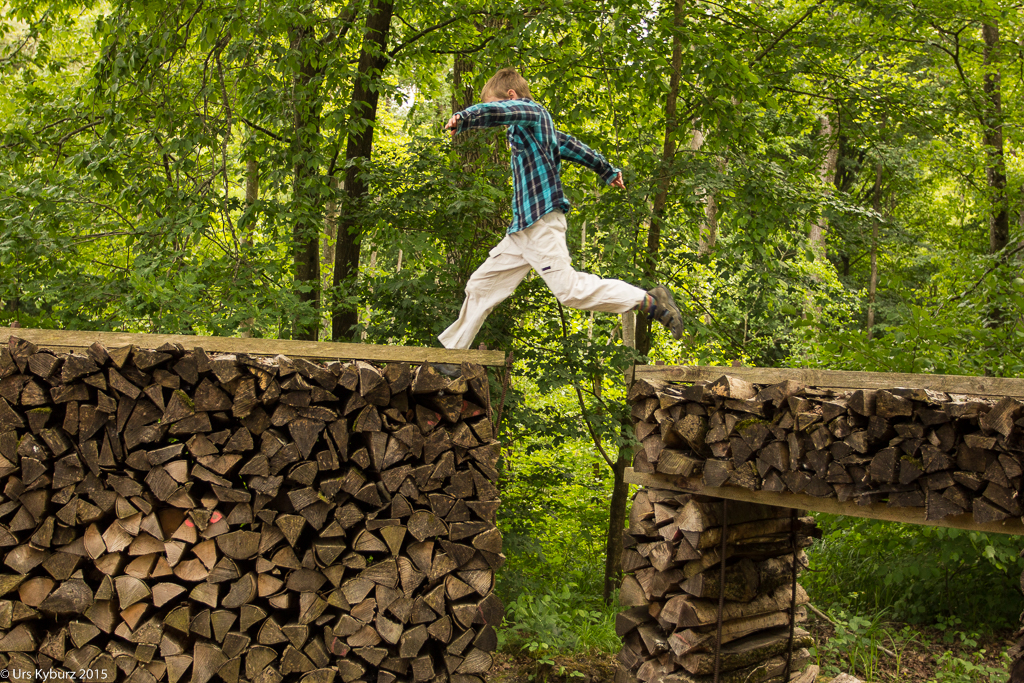 Wir seien mutig, meint die Dame am Empfang des Camping in Flaach. Ich, mutig? Das ist eigentlich nicht meine herausragende Eigenschaft, ich bin eher der vorsichtige Typ. „Sie sind mutig, an Pfingsten ohne Voranmeldung hierher zu kommen!“ Ach so. Na ja, es hat ja noch Platz. Der Campingchef fährt persönlich mit dem Fahrrad voraus und zeigt uns unseren Platz. Weil Pfingsten sei, könne es heute Nacht ein bisschen laut werden. Eine leichte Untertreibung, wie wir später feststellten. Schnell bauen wir unsere beiden Zelte auf, allerdings fehlt die Hälfte der Heringe. Kurzerhand schnitzen die Jungs mit ihren Sackmessern ein paar Ersatzheringe.
