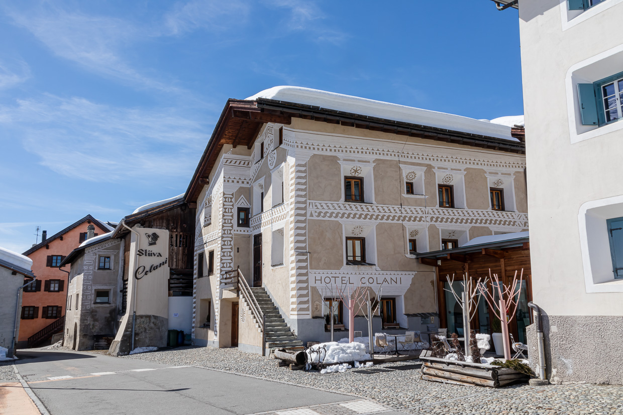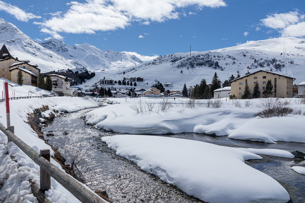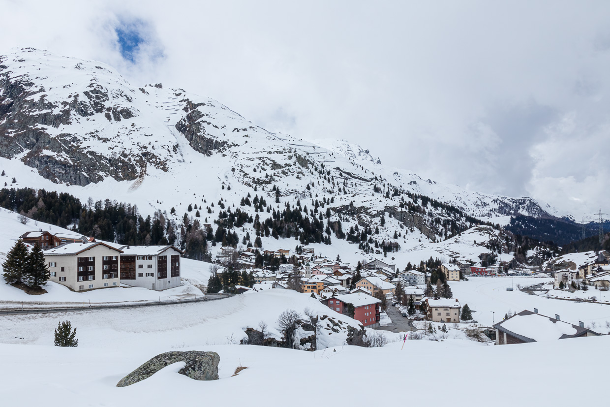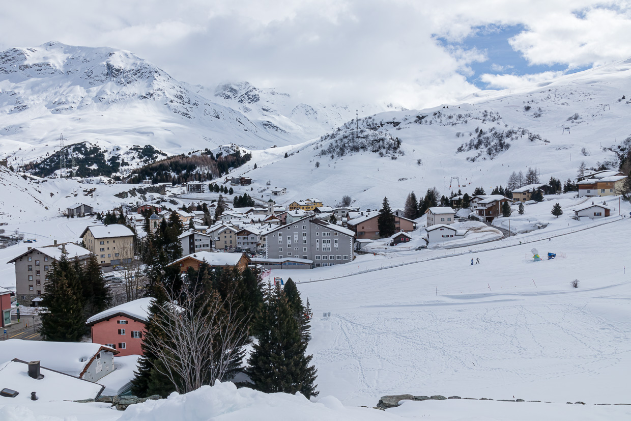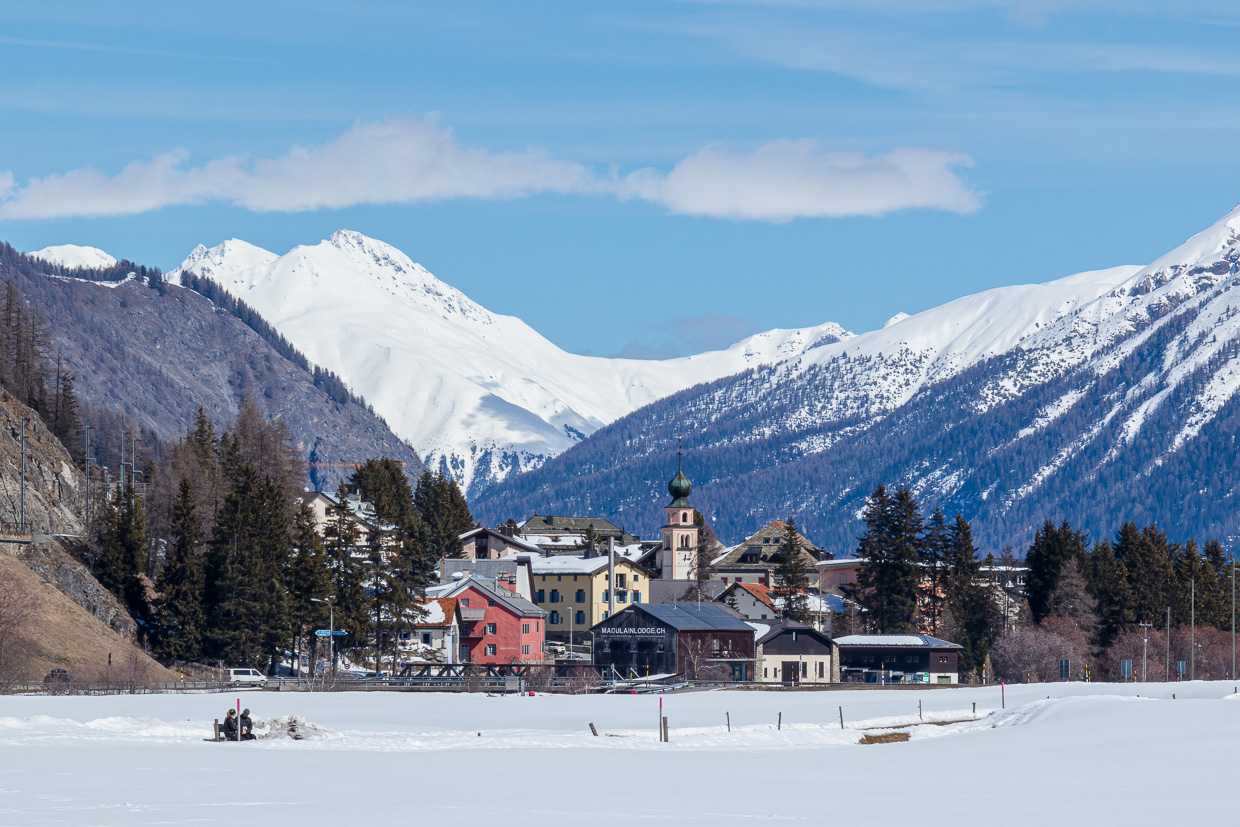 Auf der Anreise soll es bereits die erste Skitour geben, weshalb wir in Bivio am Julierpass abgemacht haben. Unsere Fahrgemeinschaft hat es so geplant, dass wir bereits in Savognin halten für einen Kaffee. In Bivio treffen wir die anderen auf einen zweiten Kaffee. Während danach die anderen auf Skitour gehen, erkunde ich die Gegend zu Fuss. Gottlob habe ich Kamera und Fernglas dabei, sonst würde es mir noch um Welten mehr stinken. Ein erstes Highlight ist der Bartgeier, der dem Hang entlang zieht. Auch die ersten Felsenschwalben des Jahres tanzen am Himmel. Ich folge den Winterwanderwegen auf alle Seiten ein Stück und geniesse immerhin die schöne Aussicht. Am Nachmittag kehren die Kollegen zurück und wir fahren zu unseren Ferienwohnungen in Madulain.