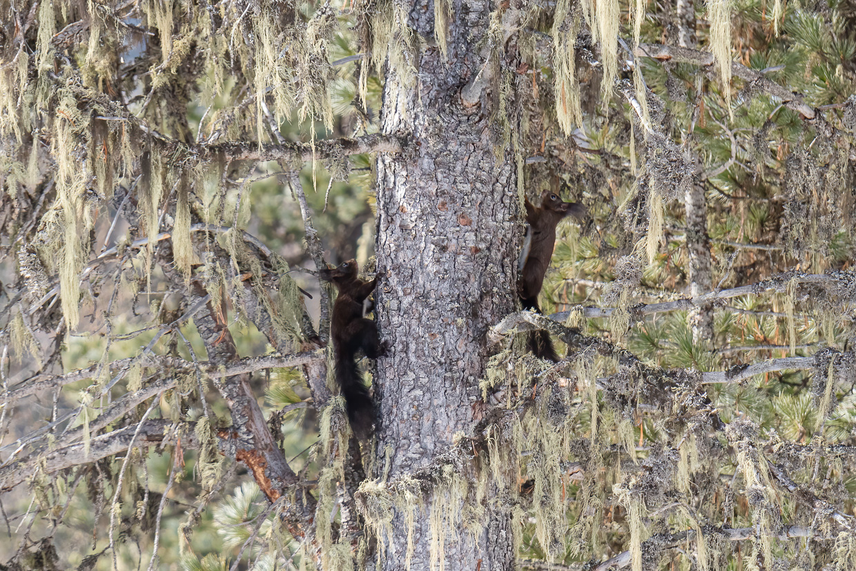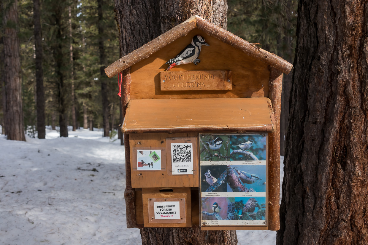 Heute unternehmen die Kollegen eine Skitour am Berninapass und nehmen mich mit bis Pontresina. Ich steige dort hoch durch den Stazerwald, ich bin fast alleine unterwegs. Dafür hat es viele Vögel und Eichhörnchen, ich geniesse es. Die Buntspechte sind in Balzstimmung, sie jagen einander hinterher oder meisseln eine Bruthöhle.