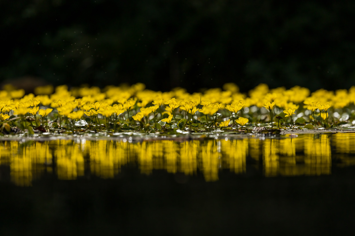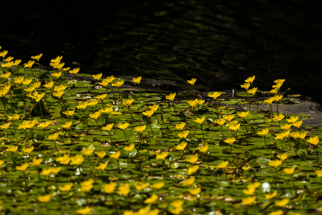 In einer kleinen Bucht blühen Seekannen, wie ein gelber Teppich liegen sie auf dem Wasser. An diesem idyllischen Ort legen wir eine Pause ein. Dabei erleben wir, wie beliebt das Gebiet ist, der Spaziergängerstrom bricht nicht ab.