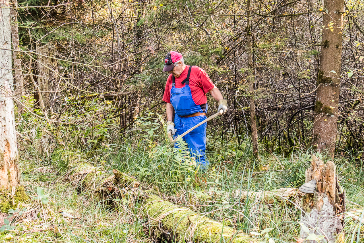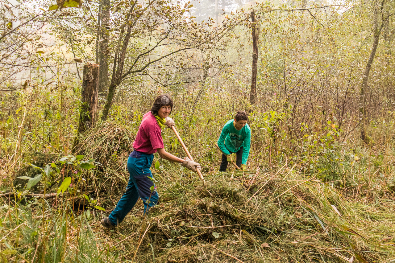Die Natur ist einfach faszinierend. Sie kennt keinen Abfall, im Gegensatz zu uns. Was gedeiht, zerfällt irgendwann wieder, wird zersetzt. Es ist ein ewiger Kreislauf, der aber durch den Menschen empfindlich gestört und immer mehr zerstört wird. Ein Problem, das wir auch hier spüren, sind die Neophyten, hier im speziellen das Drüsige Springkraut. Es verdrängt alle anderen lichtliebenden Pflanzen und ist eine wahre Plage. Wir legten es zuunterst hin und deckten es mit dem übrigen Gras zu, damit es weniger gut keimen kann.