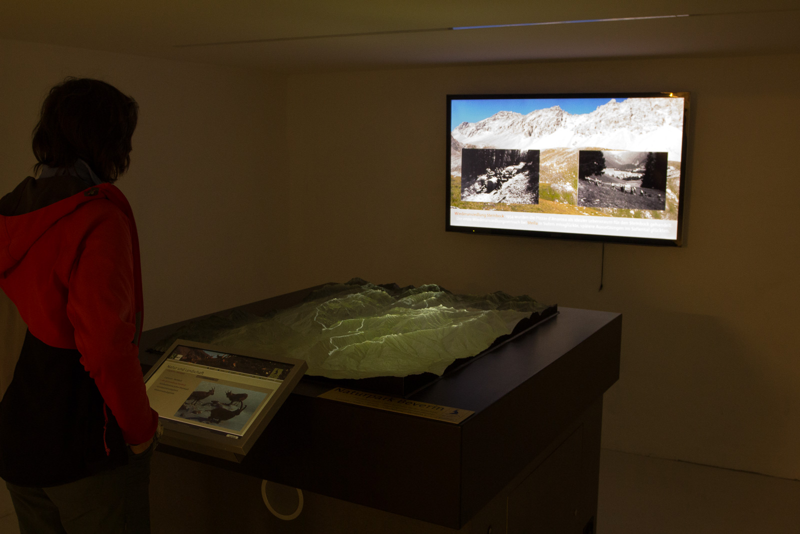 Eine interaktive Karte verrät viel über den Naturpark und die Region. Voll von schönen Erlebnissen kehren wir wieder an unseren Ferienort zurück, im Hinterkopf immer diesen Piz Beverin. Eines Tages werden wir den auch besteigen!