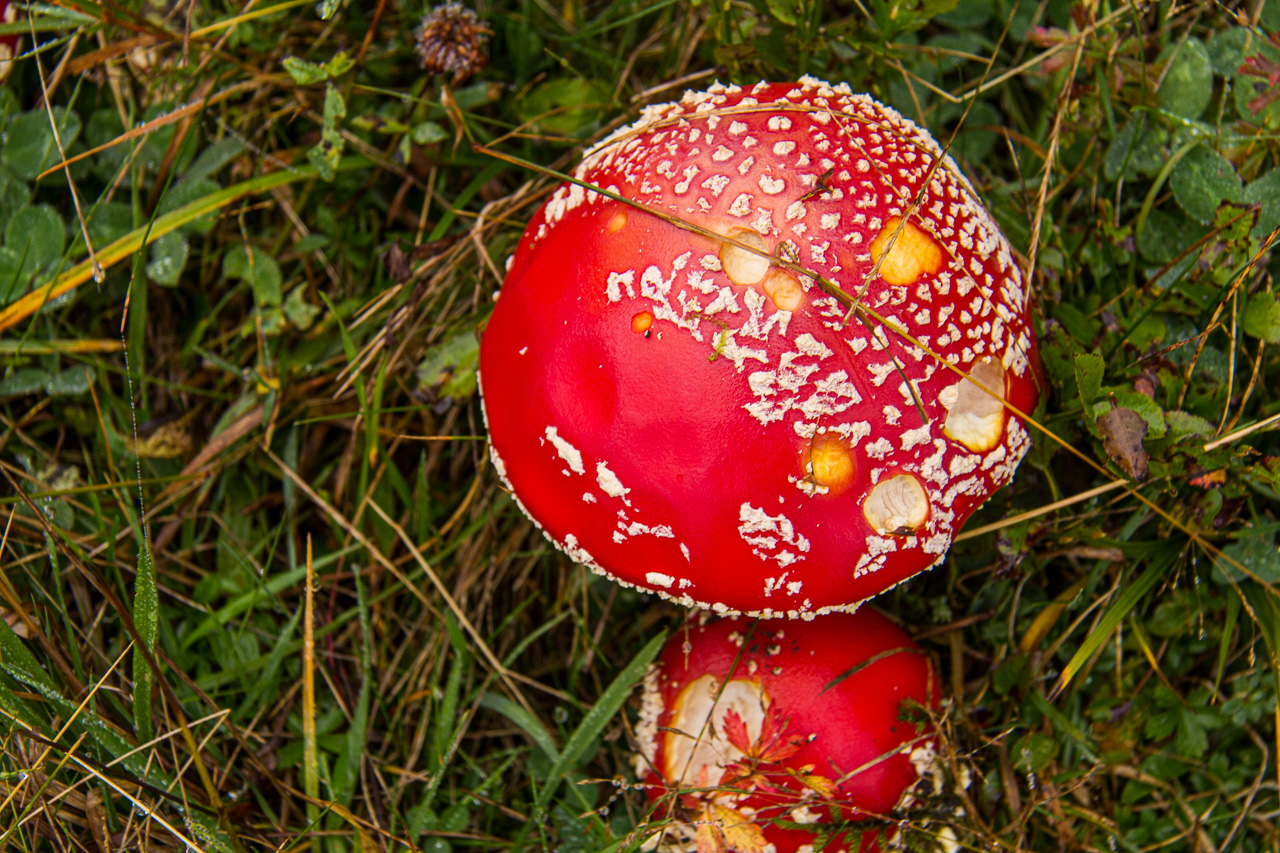 Eigentlich wären wir zum Betriebsstart des Sesselliftes um halb neun Uhr bereit. Der Betriebsleiter vertröstet uns aber um eine Stunde, so dass wir erst um zehn Uhr von der Bergstation losmarschieren können. Vom Mattstock, dem Hausberg von Amden, sehen wir gar nichts, die Sicht reicht nur ein paar Meter. Bis Hinter Höhi verläuft der Wanderweg auf Asphalt, was nicht positiv kommentiert wird von der Jungmannschaft. Von dort an gehen wir auf vertrautem Gelände. Da die Weitsicht fehlt, konzentrieren wir uns auf das, was in der Nähe ist. Überall blüht noch der Lungenenzian. Gleich neben dem Weg entdecken wir eine ganze Gruppe leuchtend rote Fliegenpilze. Eine Wanderung bei diesem Wetter lässt einen die Umgebung mit anderen Augen anschauen, sie hat etwas Mystisches. Überall glaubt man etwas zu entdecken, das dann doch nur ein Stein oder ein Strauch ist.