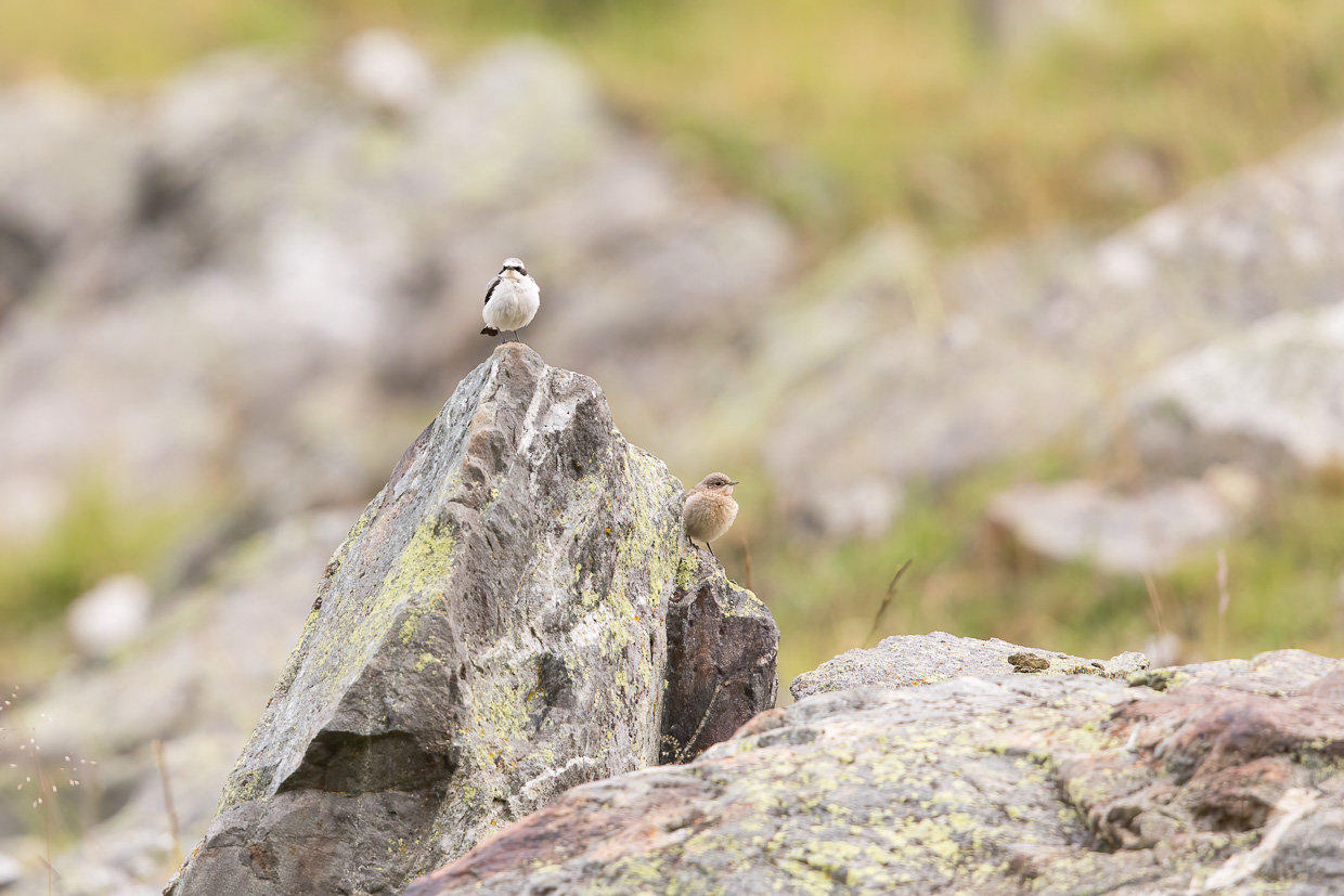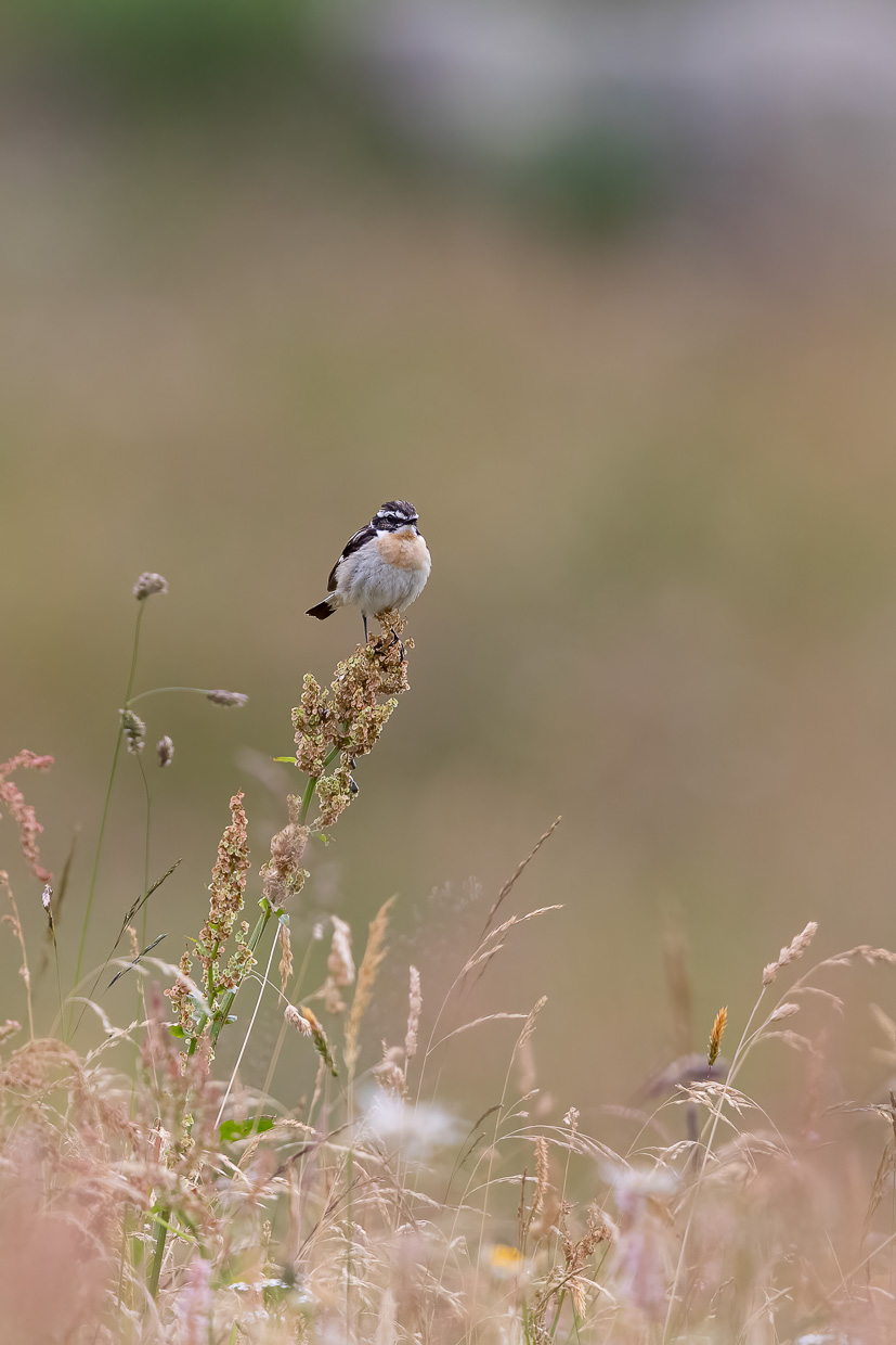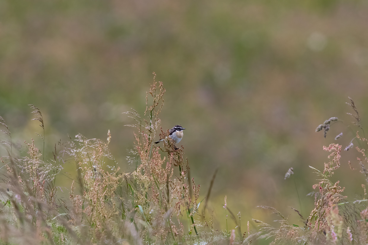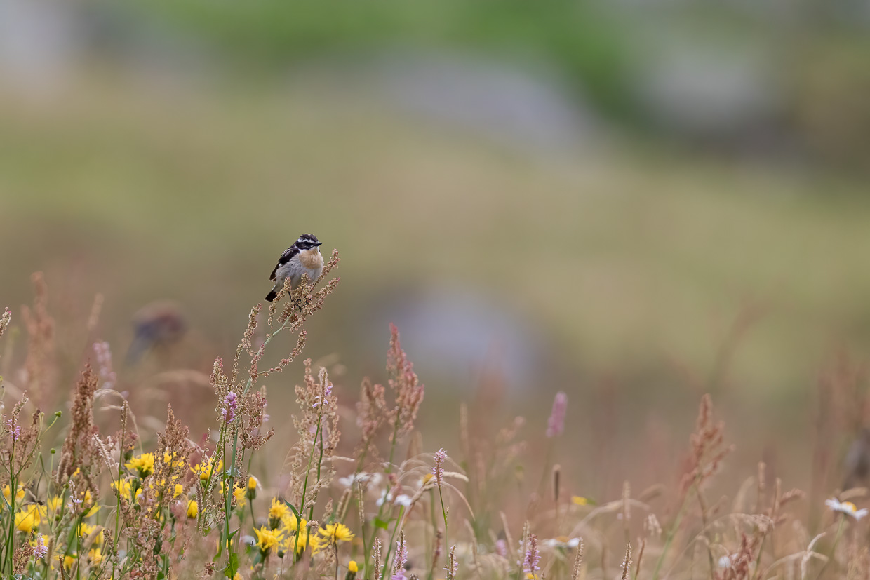 Wir gehen der Reuss entlang zurück. Eine Wasseramsel hat ihr Nest an einem Bächlein gebaut, sie wartet, bis wir vorbei sind, um den Jungen Futter zu bringen. Etwas weiter läuft ein Flussuferläufer am Ufer des Flusses. Der Weg führt nun weg von der Reuss, Wiesen entlang. Das Gras steht hoch, die Wiesenkerbel auch, ein beliebter Aufenthaltsort von Braunkehlchen. Prompt sehen wir sie hier herumturnen, aber längst nicht alle, überall piept es in der Wiese. Etwas weiter, in kürzerem Gras und mit Steinen durchsetzt, hüpfen Steinschmätzer umher und füttern Junge. Der erste Tag war also schon mal erfolgreich, auch wenn wir den Karmingimpel noch nicht gefunden haben.