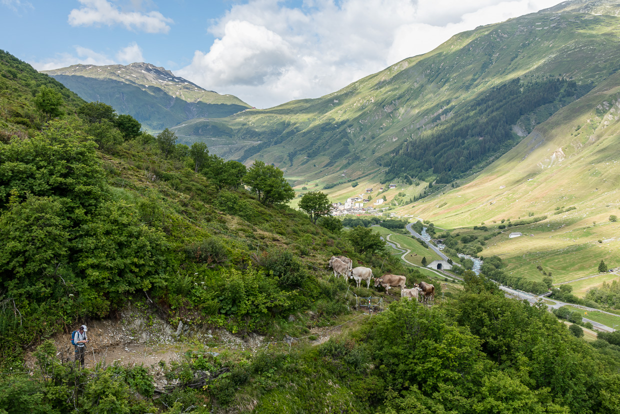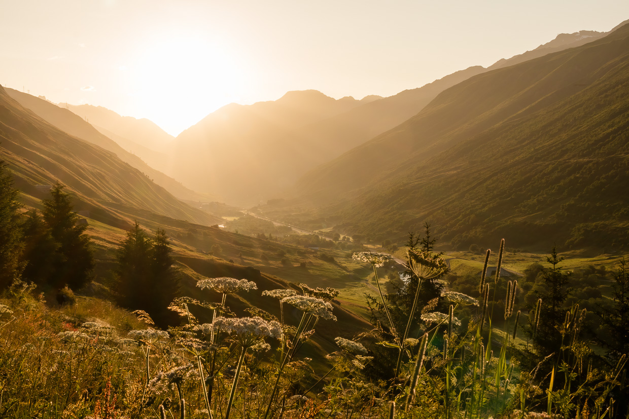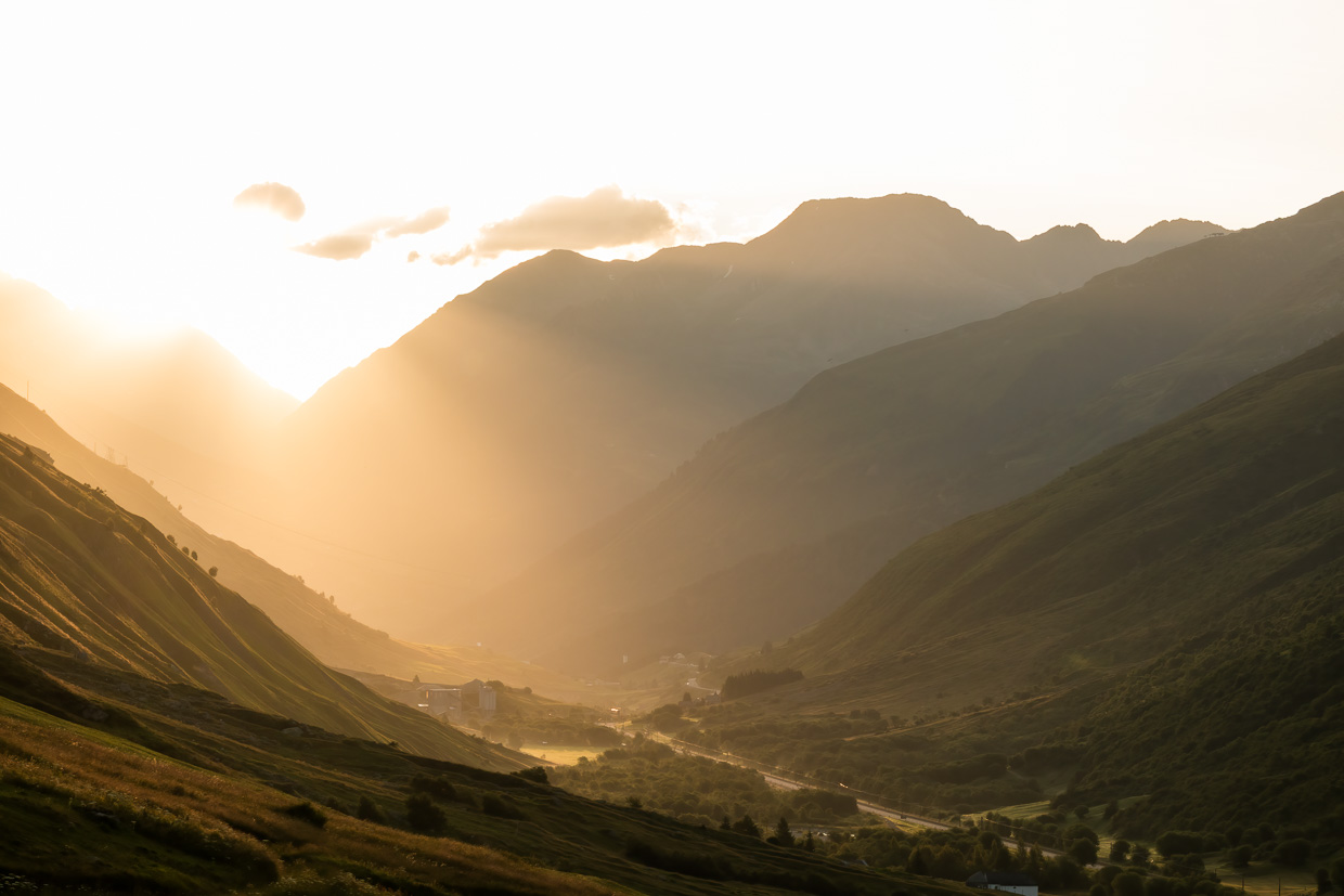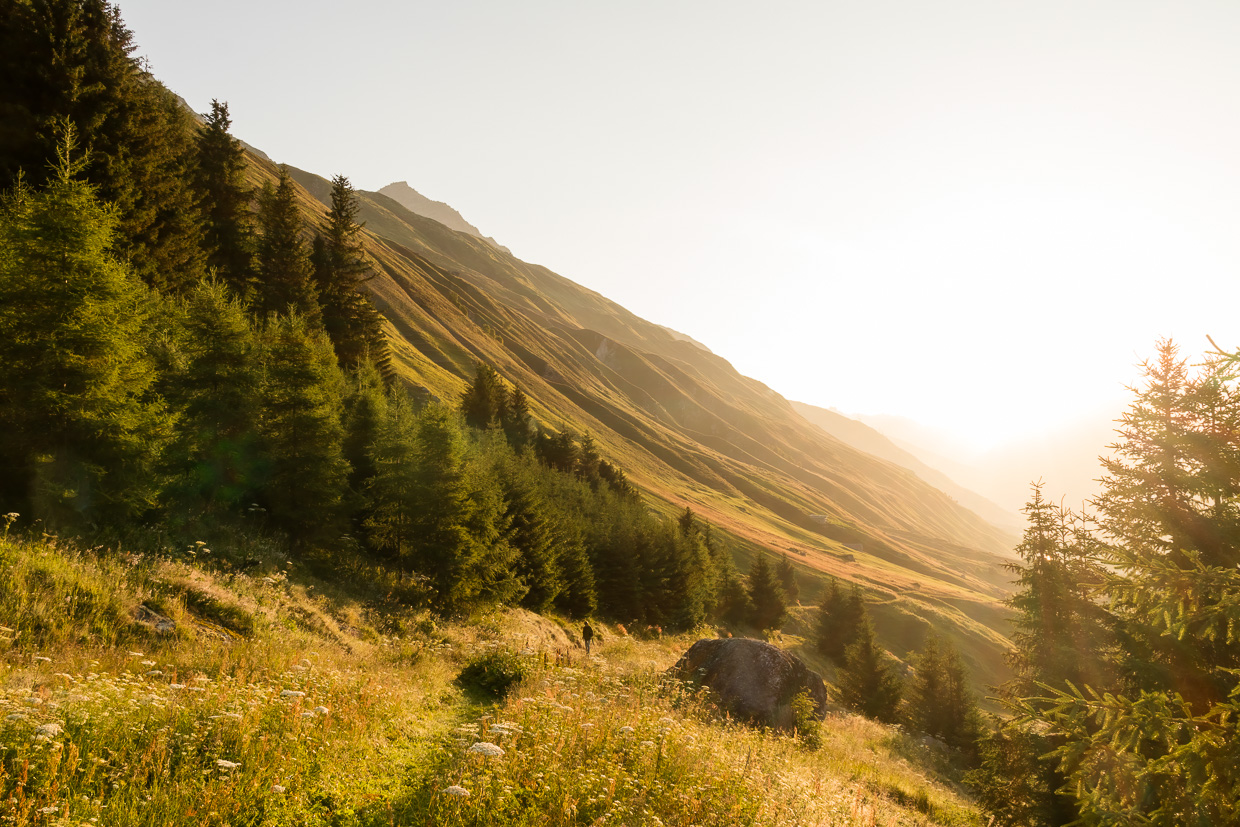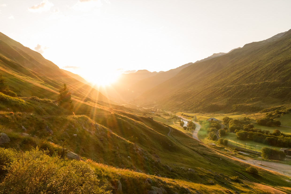Den letzten Tag in Realp habe ich mir so vorgestellt, dass wir ausschlafen, frühstücken und dann auf den Zug gehen. Der Rest der Familie hat aber anderes im Sinn, sie wollen früh raus. Zum Glück habe ich mich überreden lassen. Wir steigen vor Sonnenaufgang Richtung Bannwald hoch. Während dem kommt die Sonne hervor und taucht das ganze Tal in ein zauberhaftes Licht. Fantastisch! Nun können wir getrost weiterfahren in die Val Müstair, unserer nächsten Station.
