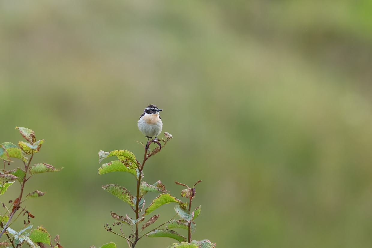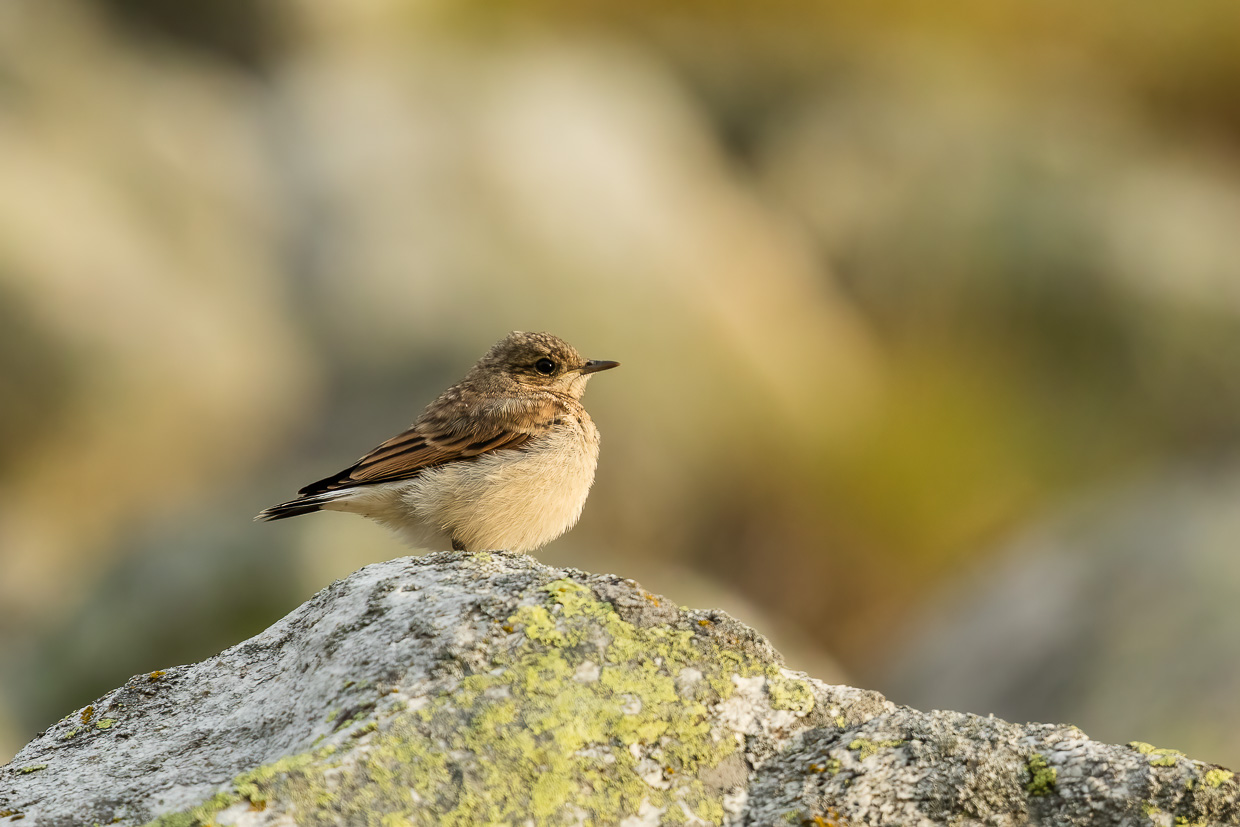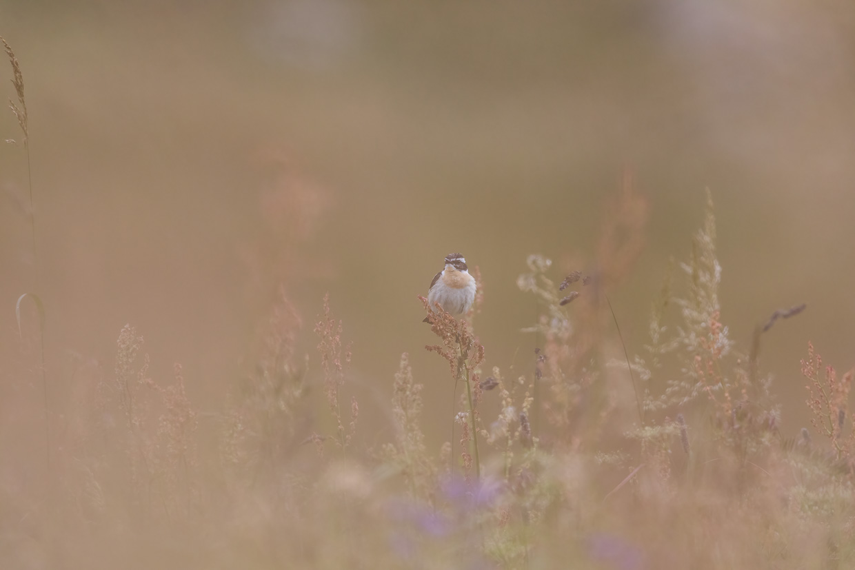 An diesem dritten Tag gehen wir alle früh raus, noch vor dem Frühstück. Silvan geht wieder zu seiner Schmetterlingswiese, ich zu den Braunkehlchen und die Frau sucht die nähere Umgebung ab. Die Sonne geht auf, als ich schon unterwegs bin. Die Steinschmätzer sind ebenfalls schon munter, ein junger sitzt in meiner Nähe auf einem Stein.