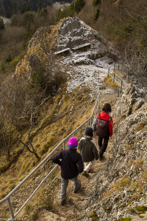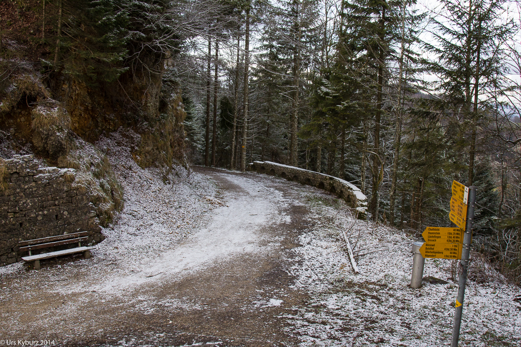 Das milde Winterwetter veranlasste uns einmal mehr, statt auf Skitour auf eine Wanderung zu gehen. Wir machten dort weiter, wo wir vor gut einem Monat (fast) aufhörten (siehe hier), auf dem Hauenstein, und wanderten auf historischen Pfaden zur Belchenflue und durch die Tüfelsschlucht nach Hägendorf.