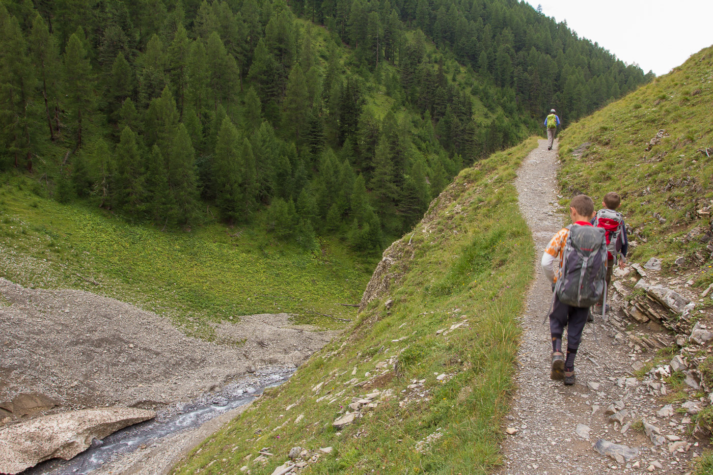 Silvan erblickte nur einen Meter neben dem Weg ein Murmeltier, das seinen Kopf aus der Höhle streckte. Er strahlte über das ganze Gesicht. Auch sonst entdeckte er immer wieder kleine Wunder am Wegrand.