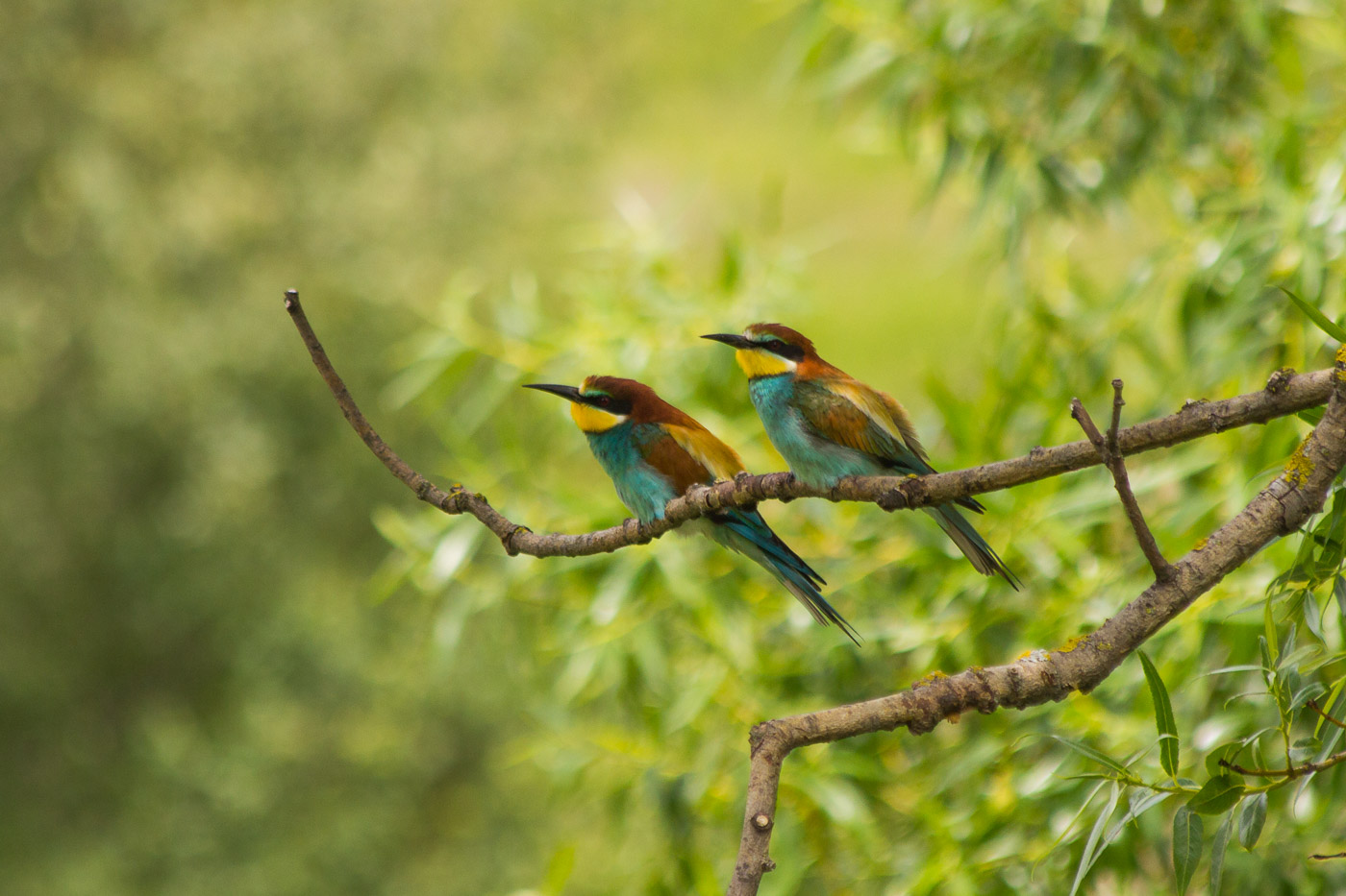 Beim Weitergehen blicken wir auf die angrenzende Wiese. Auf einem der Sträucher sitzt ein Neuntöter, ein Vogel, den es in unseren ausgeräumten Landschaften kaum mehr gibt. Er hat die Angewohnheit, seine Beute (Insekten, Reptilien, Amphibien, kleine Vögel und Säugetiere) auf Dornen aufzuspiessen. Früher glaubte man, er spiesse zuerst neun Tiere auf, bevor er diese zu fressen beginnt, daher auch der Name. Wir erreichen einen Hide, allzu viel gibt es aber nicht zu sehen. Etwas weiter, auf einem Hügel, steht eine Sichtschutzwand. Diese interessiert uns nun mehr. Denn von dort aus kann man die Bienenfresserkolonie beobachten.