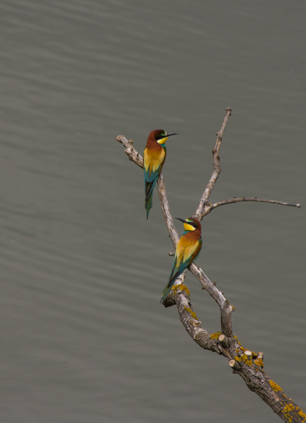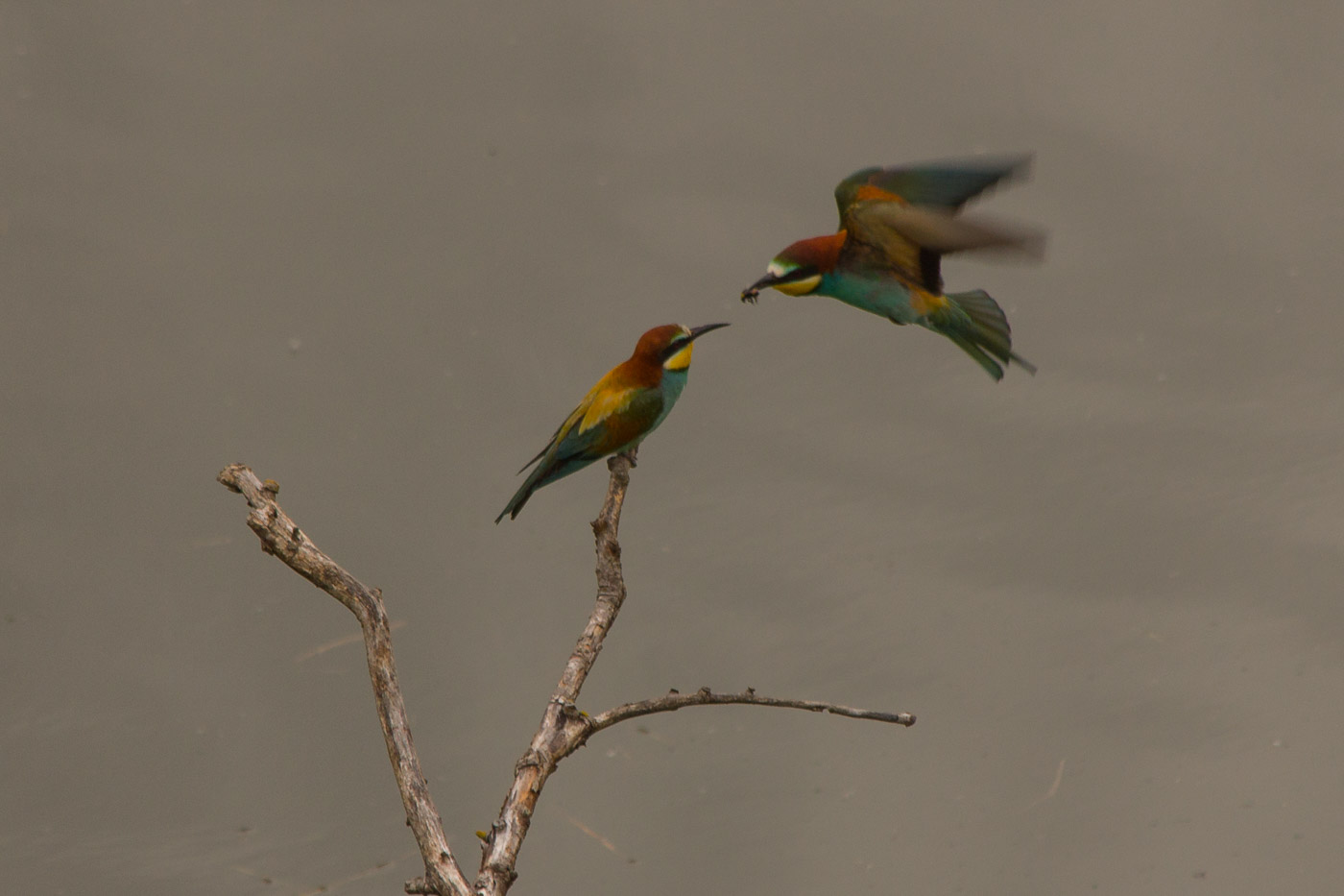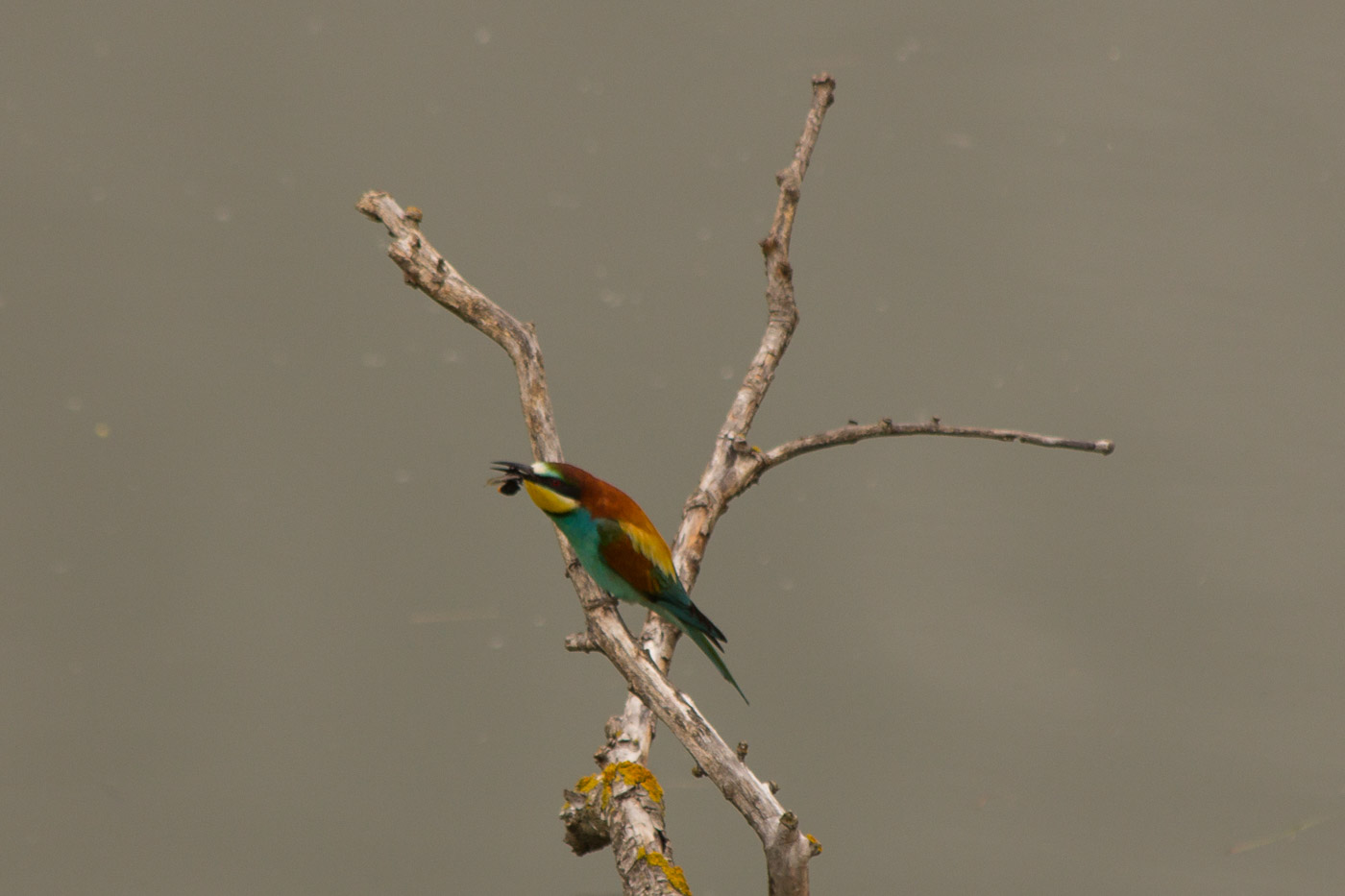 Nur wenige Meter vor uns sitzen sie auf Ästen, fliegen umher und kommen mit Beute zurück, die sie dann auch tatsächlich auf einem Ast erschlagen. Am senkrechten, sandigen Ufer der Insel sehen wir die Brutröhren, wo die Vögel ein- und ausfliegen oder auf Nahrung des Partners warten. Einfach wunderschön, diese Vögel! Irgendwie passen sie gar nicht recht hier hin, in die Berge, man wähnt sich eher in Afrika, wo auch die meisten Vertreter dieser Gattung leben. Lange gucken wir dem Schauspiel zu, ehe wir zurückkehren. Unterwegs hören wir immer wieder den Gesang der Feldlerche. Als unvermittelt eine vor uns singend auffliegt, schauen wir ihr nach. Wir müssen den Kopf immer mehr in den Nacken legen, so hoch fliegt sie.