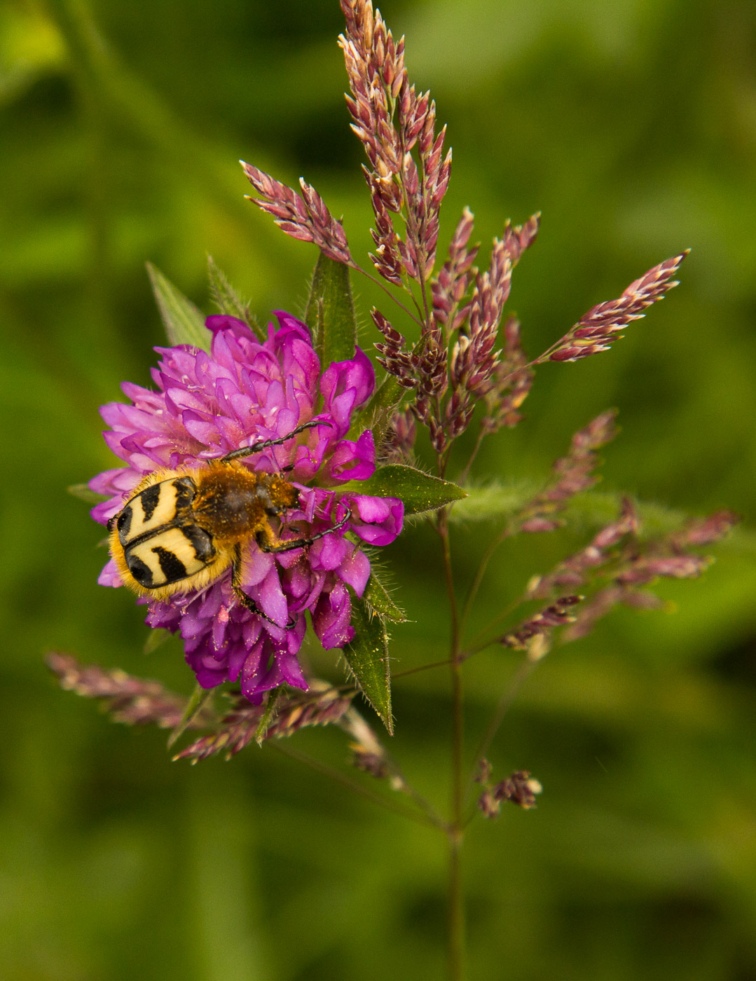 Philipp, der Tourenleiter, schaut durchs Fernglas: „Yessss!“, entfährt es ihm. „Was ist?“, fragt meine Frau. „Nichts, nichts“. „Jetzt sehe ich es auch“, meldet sich Fabian. „Was denn?“ Die Frau vergibelt fast. „Na eben, nichts“, entgegnet Fabian grinsend. Ich schaue auch durchs Fernglas. Diese Vögel, so bunt, das sind ja… Bienenfresser! Wunderschöne, farbenprächtige Vögel und schon lange auf der Wunschliste unseres Jüngsten. Wie grosse Schwalben jagen sie Insekten, vor allem Bienen, Wespen und Hornissen, die sie nach dem Fang auf einen Ast schlagen, um das Gift auszutreiben. Wir schauen aber nicht nur in die Weite, sondern bewundern auch die Blumen gleich vor uns: Esparsette, Klappertopf, Kornblume, Flockenblume und viele mehr blühen da. Dass da in unserem Rücken die Autobahn A9 entsteht, kümmert uns jetzt nicht. Aber in Zukunft wird es nicht mehr so idyllisch sein.