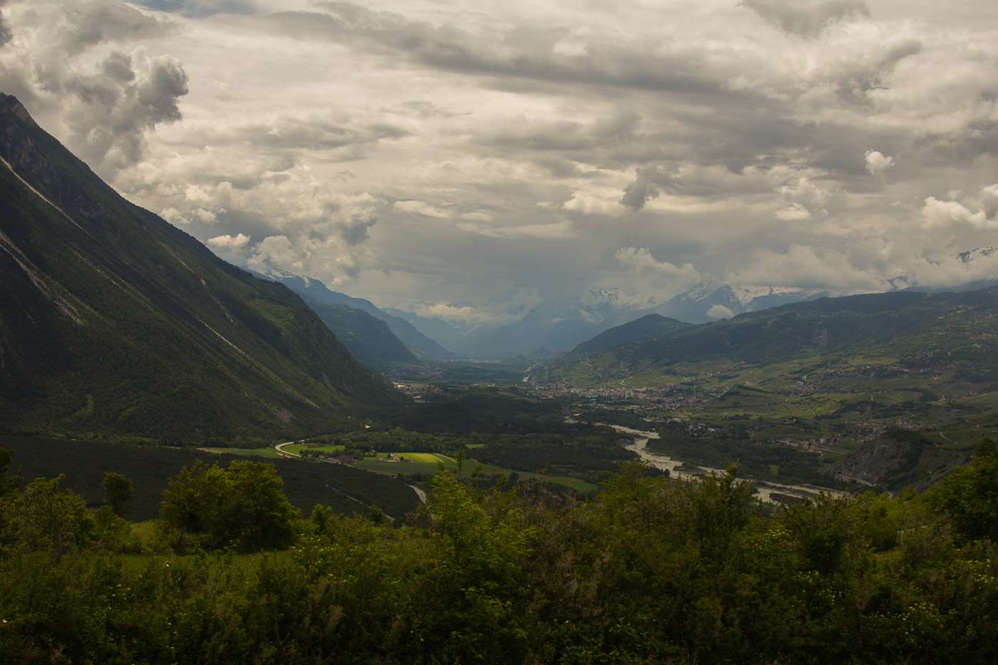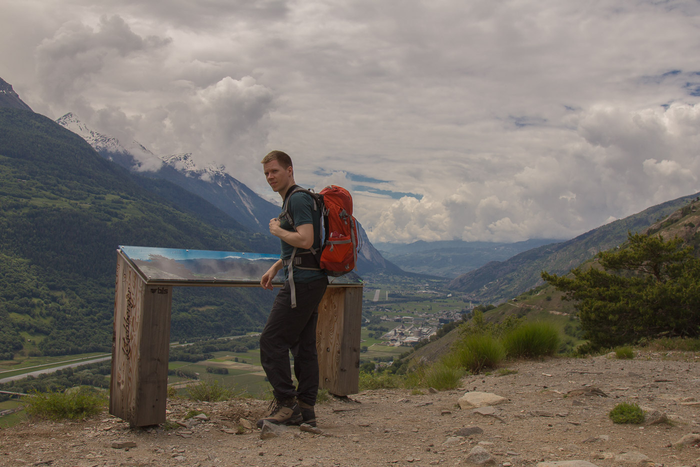 Das Wetter diesseits der Alpen ist durchzogen, es regnet manchmal, weitere Schauer sind angesagt. Wir hoffen auf bessere Bedingungen im Wallis. Und werden nicht enttäuscht, die Sonne scheint nach dem Lötschbergtunnel. Wir fahren weiter nach Turtmann, ein Kaffee liegt nicht drin. Aber wer will schon Kaffee bei der Aussicht auf einen tollen Tag. Nichts wie los! Wir schlendern auf einer Strasse, die mit einem Fahrverbot belegt ist. Im Wallis sind aber Fahrverbote anscheinend nur Empfehlungen, dauernd fährt wieder ein Auto an uns vorbei.