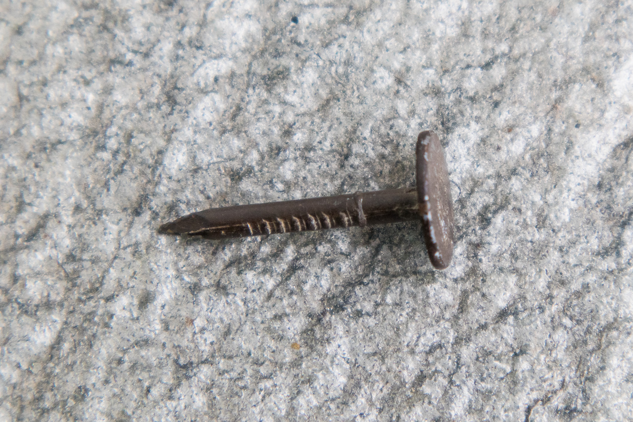 Vor der grossen Strasse halten wir an. „Bei mir pfüüset etwas!“, sagt Silvan. Nein, das darf nicht wahr sein, nicht schon wieder! Die Frau zieht einen grossen Nagel aus dem Pneu. So ärgerlich! Wir unterqueren noch die Strasse, um dann im Wald auf der anderen Seite den Platten zu beheben. Also, Schlauch raus, Flicken drauf, Schlauch rein, pumpen. Es geht keine Luft rein! Nochmals das gleiche Prozedere, nochmals einen Flicken drauf (der Nagel hat den Schlauch komplett durchstochen), wieder rein, pumpen. Diesmal bleibt die Luft drin, nun kann ich auch Pause machen.