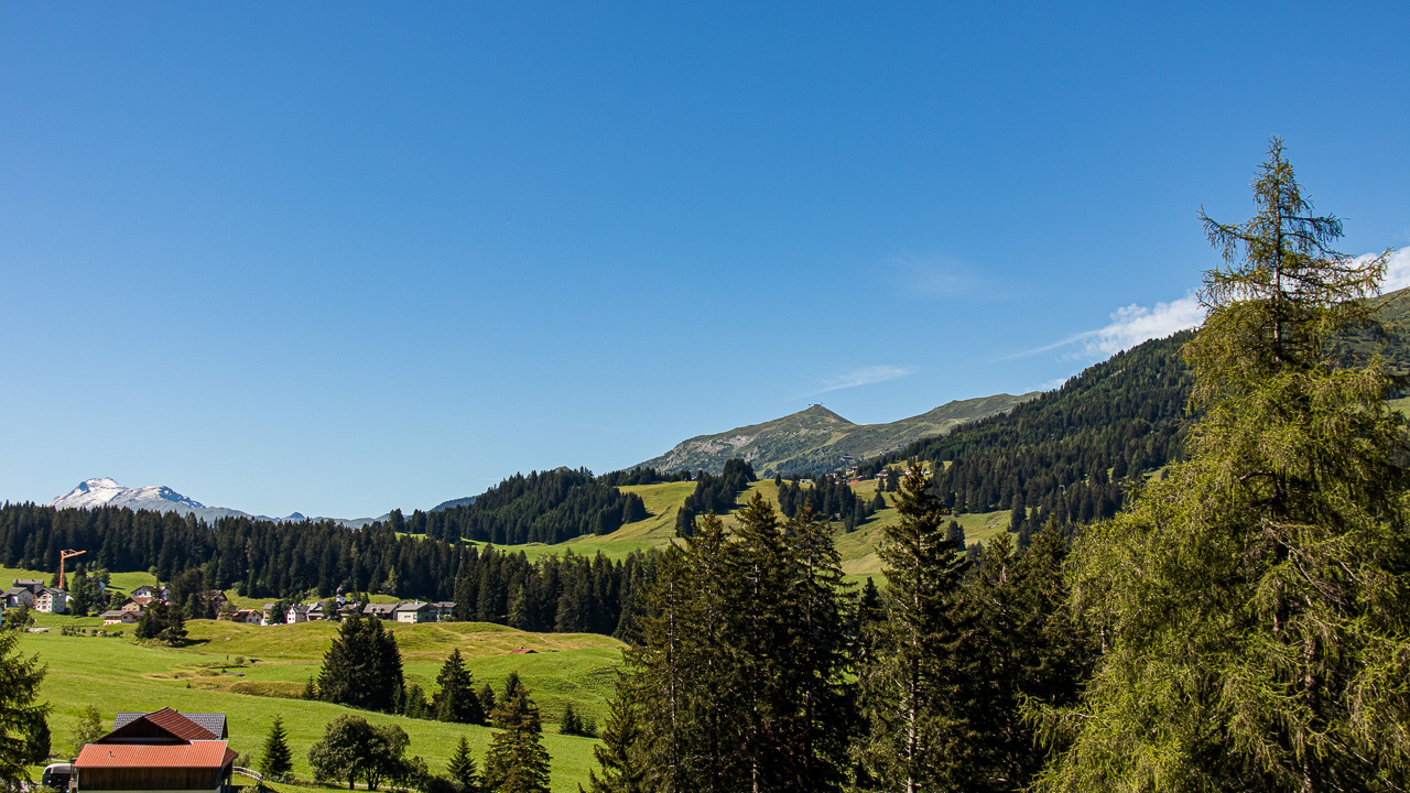 Nun wird es etwas gemütlicher, bei Parpan wechseln wir die Talseite und fahren dem Hang entlang. Wir schnaufen durch. Zwischendurch blicken wir zurück auf den Piz Scalottas. Wie weit weg der schon ist! Kurz wird es nochmals heikel, der Trail führt durch den Wald über nasse Wurzeln. Silvan rutscht prompt aus und umarmt eine kleine Tanne. Weiter unten machen wir eine erste Pause, bevor wir weiter fahren. Es geht noch eine Weile auf Asphaltstrassen und Feldwegen weiter, bis wir wieder den Wald erreichen. Die Strasse wird zum Pfad, steil, nass und rutschig, gespickt mit Wurzeln. Und links geht es den Abhang hinunter. Nicht immer so mein Geschmack. Der Trail scheint endlos zu sein, mal flowig, dann wieder ruppig, zwischendurch auch mal sumpfig. Zwischendurch schätzen wir ab, wie hoch wir eigentlich noch sind.