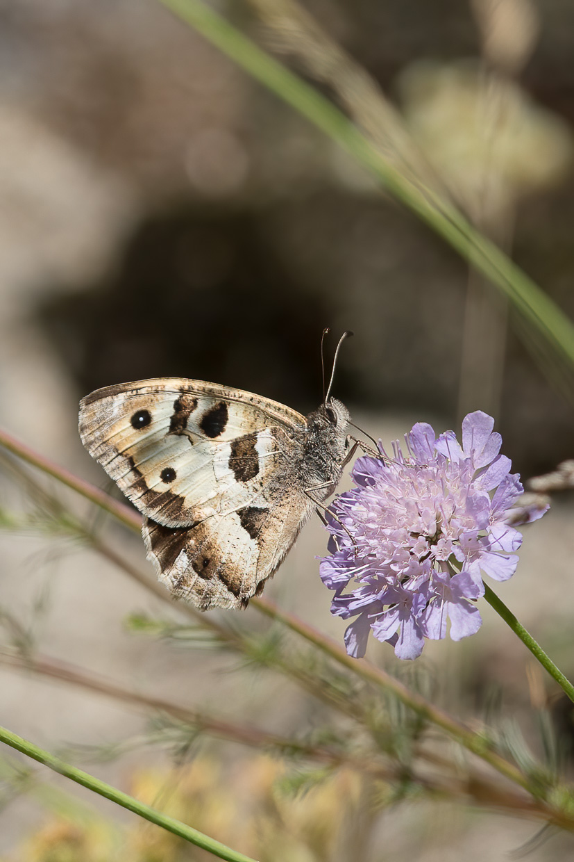 So machten die Frau und ich uns auf den Weg nach Sta. Maria zu unserer letzten Wanderung in diesen Ferien (Silvan war bereits weitergezogen an den Sustenpass). Wir schauten vorher auf die Karte, wo es sonnenbeschienene Felsensteppe hat, das bevorzugte Aufenthaltsgebiet der Berghexe. Wir erreichten das erste geeignet erscheinende Gebiet. Zuerst fanden wir vor allem Schachbrettfalter, eine Art, die es auch bei uns im Flachland gibt. Nach einer Weile entdeckten wir aber tatsächlich einen Felsenfalter! Und noch einen! Und noch einen!