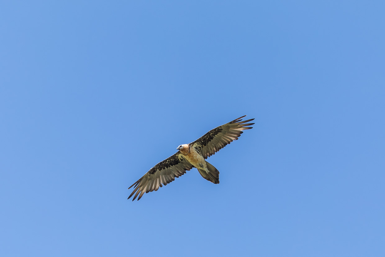 Nach diesem Erfolg steigen wir den Wanderweg hoch und schliessen die Schlaufe wieder. Am höchsten Punkt ist noch nicht fertig mit freuen, über dem Horizont taucht ein Bartgeier auf, zieht ruhig seine Kreise. Im Abstieg fliegt dann noch ein Sperber vorbei, und als wäre das nicht genug Grund zur Freude, hören wir im Abstieg auf einem schmalen, fast zugewachsenen Weg eine Wachtel. Diese Erlebnisse feierten wir im Café Meier in Sta. Maria bei Kuchen und Kaffee. Was für ein schöner Abschluss dieser Ferien!