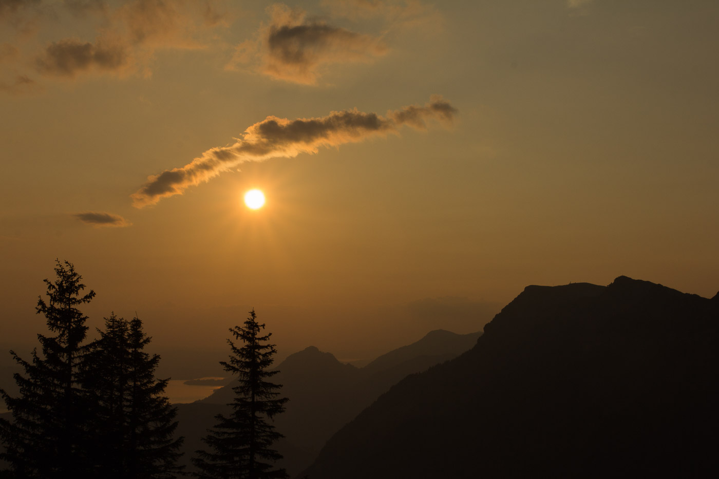 Den Abstieg bewältigten wir schnell. Hilfreich waren die Schneefelder, auf denen wir hinunterrutschten. Im Nu waren wir in der Lidernenhütte. Dank ihrer Lage konnten wir einen herrlichen Sonnenuntergang geniessen.