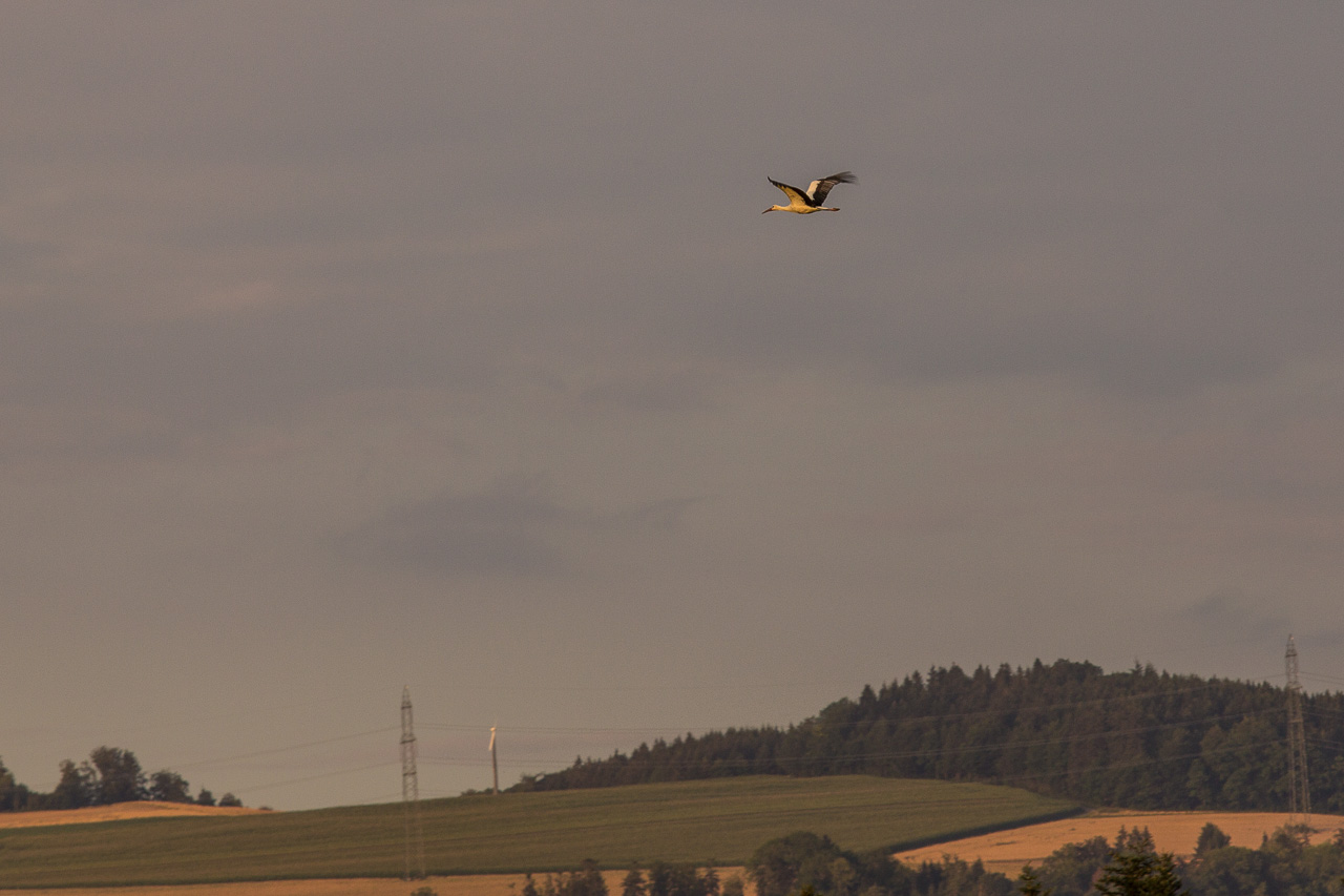 Wir gehen weiter zur Stelle, von der man den besten Blick auf den See hat. Mit unseren Feldstechern suchen wir die Wasseroberfläche ab, aber Meister Bockert ziert sich. Wir geniessen den Abend trotzdem, schauen den Möwen zu, den Graureihern und den Störchen. Es bleibt Zeit, auch ein wenig herumzuschauen. Um neun kehren wir zurück, während die anderen noch ausharren. Kein Biber gesehen, aber ein schöner Tagesabschluss ist es allemal.