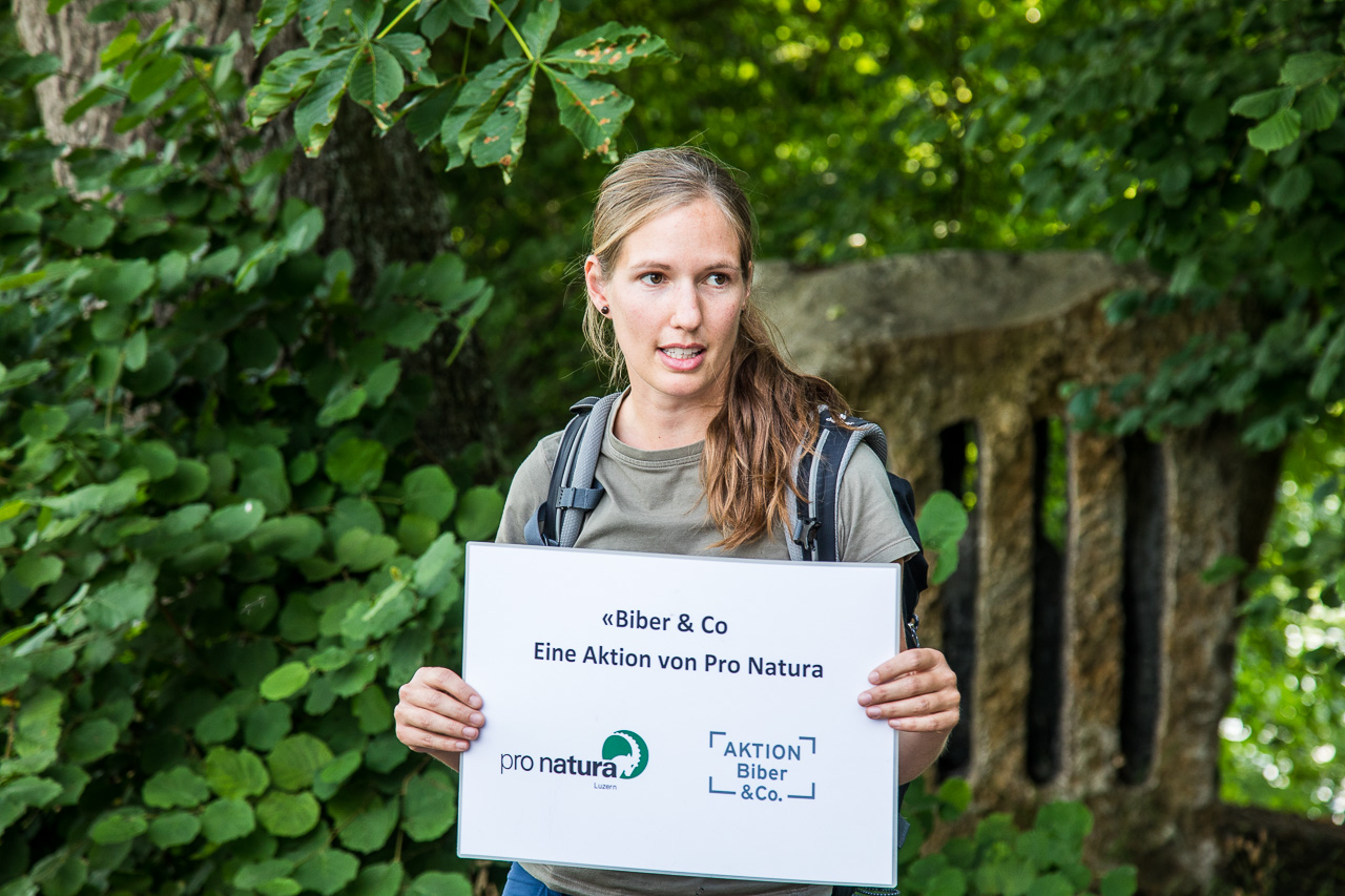 Wir haben genug Zeit, haben im Restaurant „Rössli“ in Mauensee das Abendessen genossen. Nun warten wir auf den Beginn der Exkursion, erhaschen schon mal einen Blick auf den See. Ein grosses Tor versperrt den Weg auf die Insel, das Schloss ist in Privatbesitz. Eine Gänsefamilie schwimmt vorbei, ein Haubentaucher sucht nach Fischen. Pünktlich um 19 Uhr werden wir von Miriam Peretti, der Verantwortlichen für die „Aktion Biber & Co“ bei Pro Natura Luzern, begrüsst. Sie stellt das Projekt kurz vor und macht uns gleichzeitig wenig Hoffnung, dass wir Biber sehen werden. Uns ist das nicht so wichtig, wir haben ja schon mehrere Male Biber gesehen (Auf Biberpirsch und Zwei Naturjuwelen im Aargauer Norden).