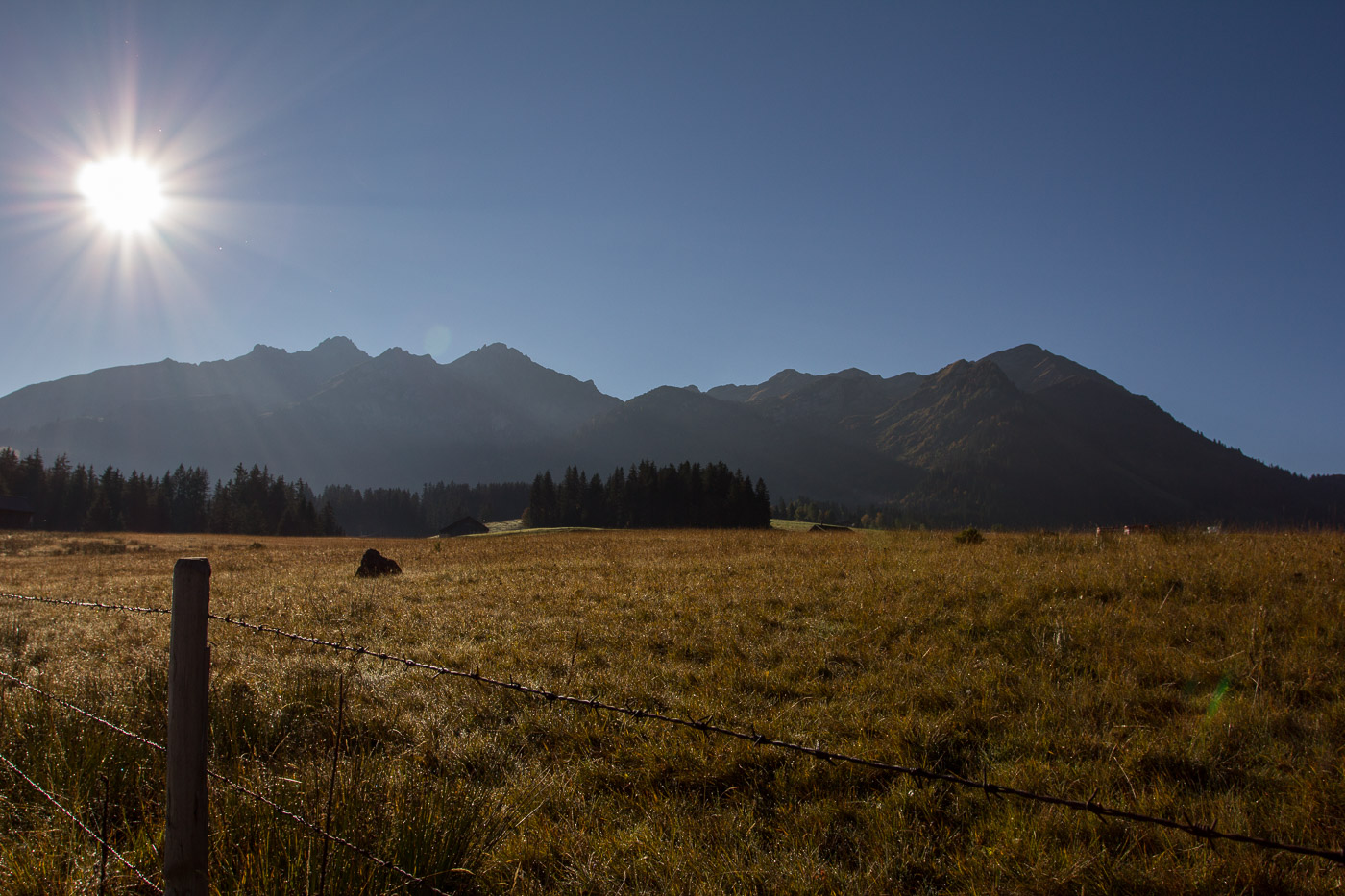 Nach den beiden eher bescheidenen letzten zwei Tagen war heute wieder Prachtswetter angesagt. Wir fuhren zum ersten Parkplatz nach der Passhöhe des Col des Mosses. Die Sonne schien vom wolkenfreien Himmel, also beste Bedingungen für eine Biketour mit den Kids. Zum Aufwärmen gab es gleich zu Beginn eine Steigung zu bewältigen. Das Hochmoor leuchtete in den schönsten Gelb-, Rot- und Brauntönen. Auf der Route „Alpine Bike 1“ fuhren wir hinunter zur Kaserne, wo ein ausgedienter Panzer die Besucher, freiwillige und unfreiwillige, empfing.