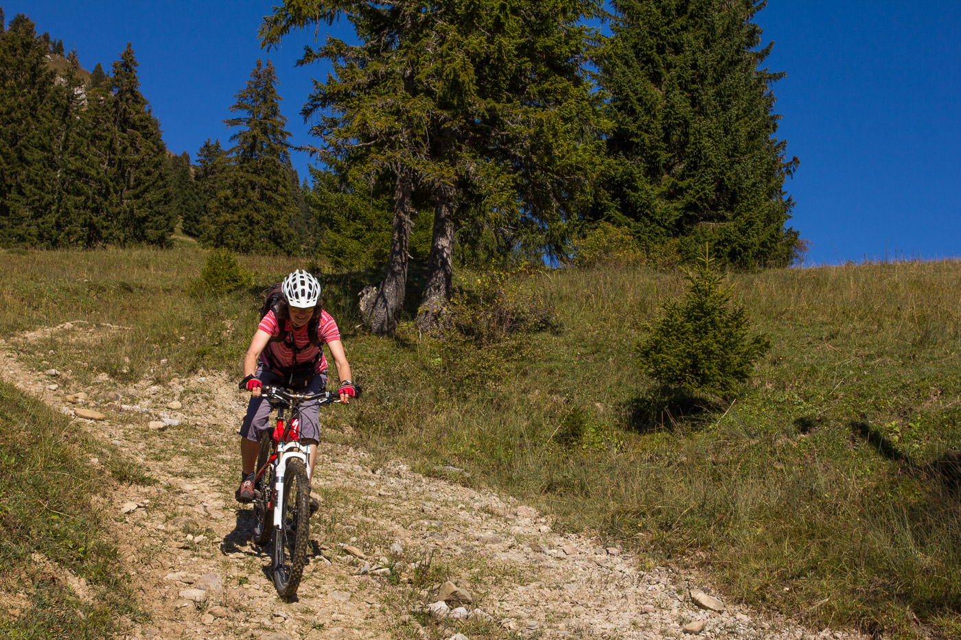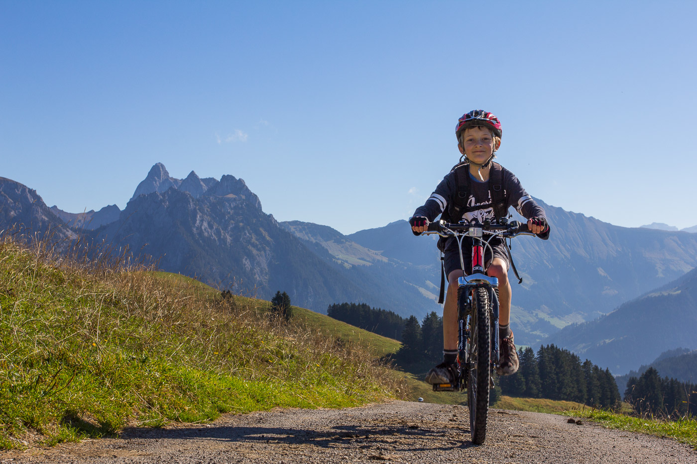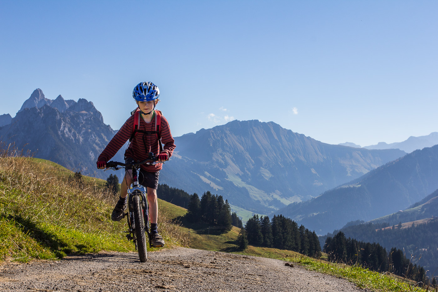 Familientauglichkeit: Für konditionsstarke Kinder geeignet. Ohne sichere Biketechnik geht man das Stück vom Col de Sonlomont bis Les Crauses besser zu Fuss.