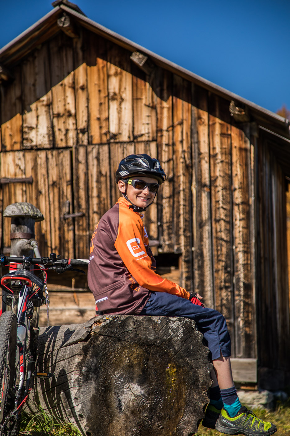 Wir erblicken das Ziel vom Vortag, den Piz Martegnas. Und auch sonst sollte man trotz der Singletrails die Landschaft geniessen. Sooooo schön, ehrlich. Abwärts braucht es viel weniger Pausen, da kennen die Jungs nichts. Im Weiler Cre digl Lai wäre ein Kaffee willkommen, aber es gibt hier kein Restaurant. Also weiter über den Bach und dem neuen Weg entlang. Wir fahren durch den Wald, an wunderschönen Orten vorbei. Bald kommt uns die Gegend wieder bekannt vor. Das ist doch, genau, Lungatigia, hier kamen wir auf der Biketour nach Salouf schon vorbei. Nun fahren wir hauptsächlich auf Forststrassen ab nach Tigignas, von dort auf der Fungerätestrecke nach Savognin. Was für eine Tour! Wir sind uns einig: Es könnte so weitergehen. Wäre da nicht ein kleines Problem: Die Ferien sind fast zu Ende.