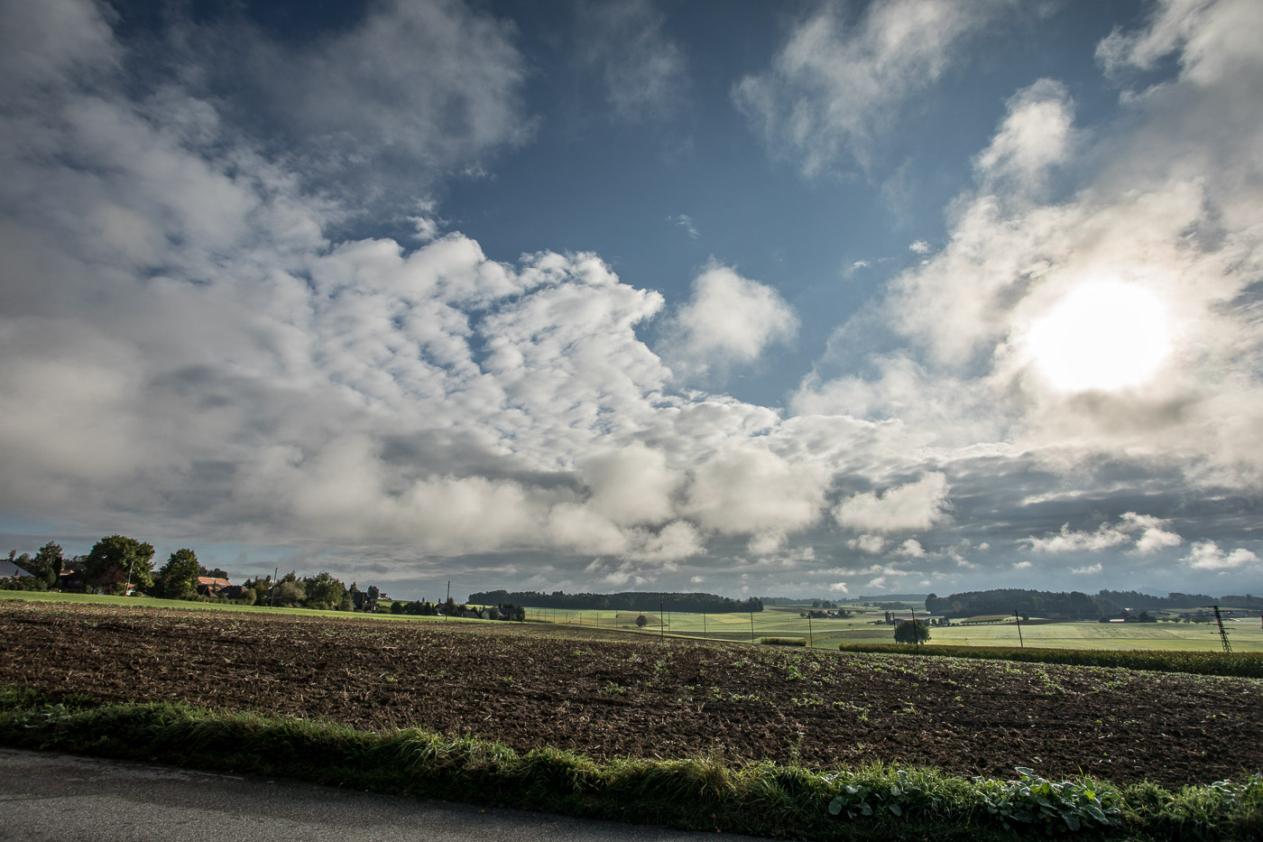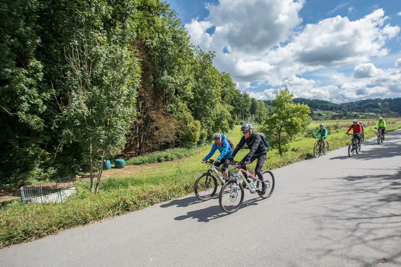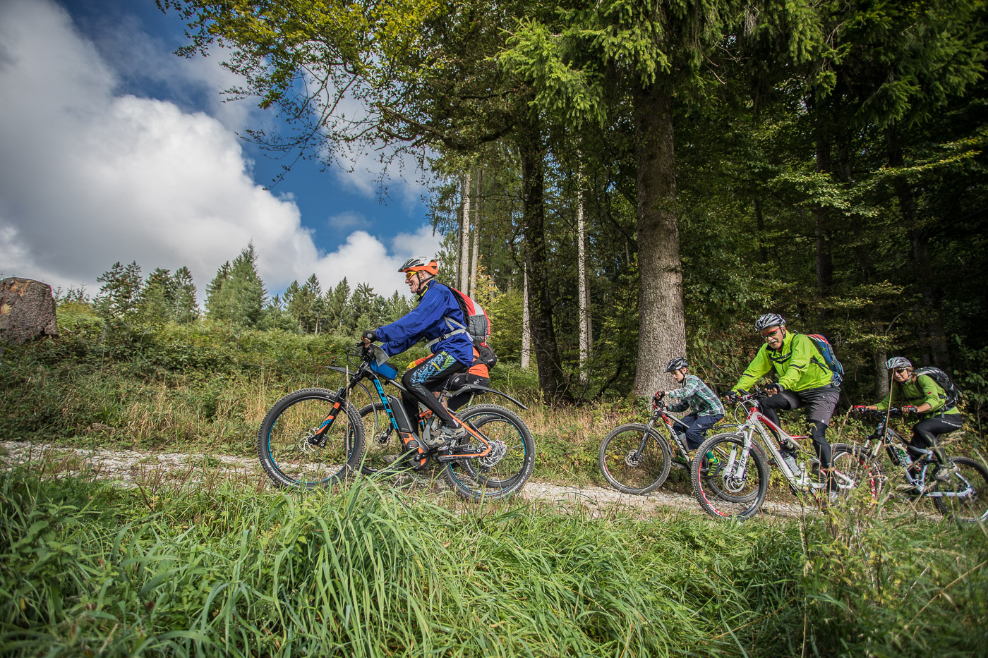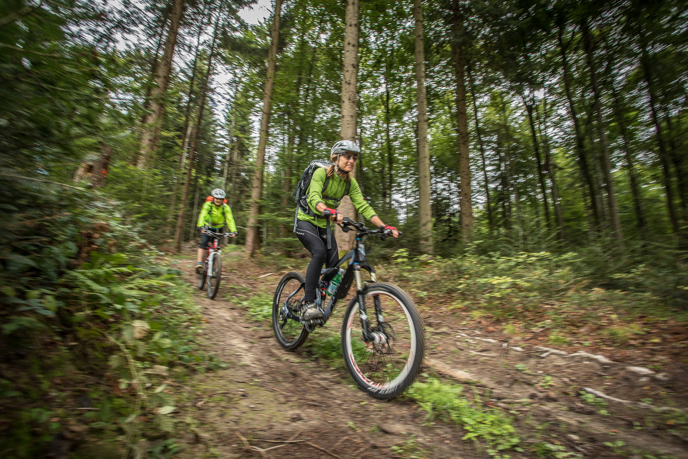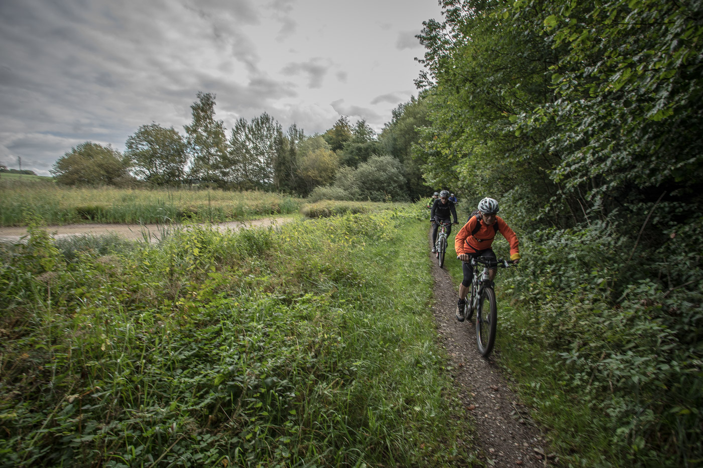 Pünktlich um neun Uhr starten acht Mitglieder des SAC Homberg zur Tour. Es ist eine generationenübergreifende Gruppe, der Jüngste ist 12 Jahre alt, der Älteste 79! Wir starten also in Meikirch, gelegen im Irgendwo zwischen Bern und Biel, und fahren zuerst einmal über die Felder, vorbei an Weilern mit so lustigen Namen wie Aetzikofen und Jetzikofen. Kühe weiden, dazwischen huscht ein Fuchs vorbei. Wir erblicken die beiden Hausberge von Bern, den Bantiger und den Gurten. Dick und schwer hängen dunkle Wolken über uns und liefern sich mit der Sonne einen Kampf um die Vorherrschaft am Himmel. Weiter geht es über Feld und durch Wald, in abwechslungsreichem Auf und Ab. Nach 13 Kilometer ist im Weiler Schüpberg im gleichnamigen Restaurant eine Kaffeepause mit Nussgipfel fällig, die ideale Stärkung für Mountainbiker.
