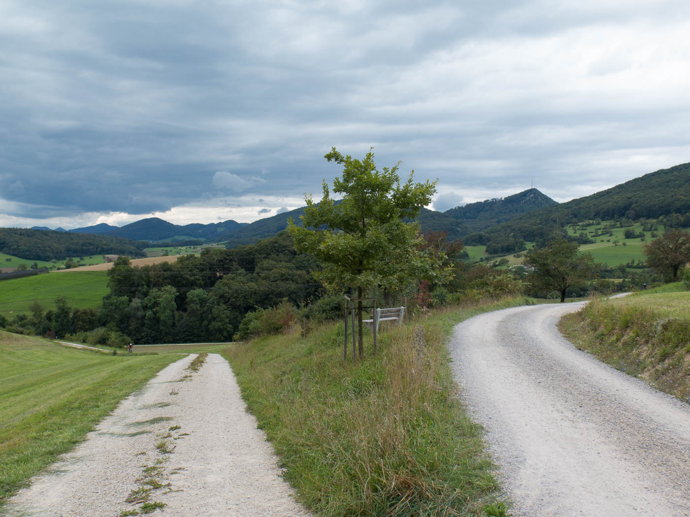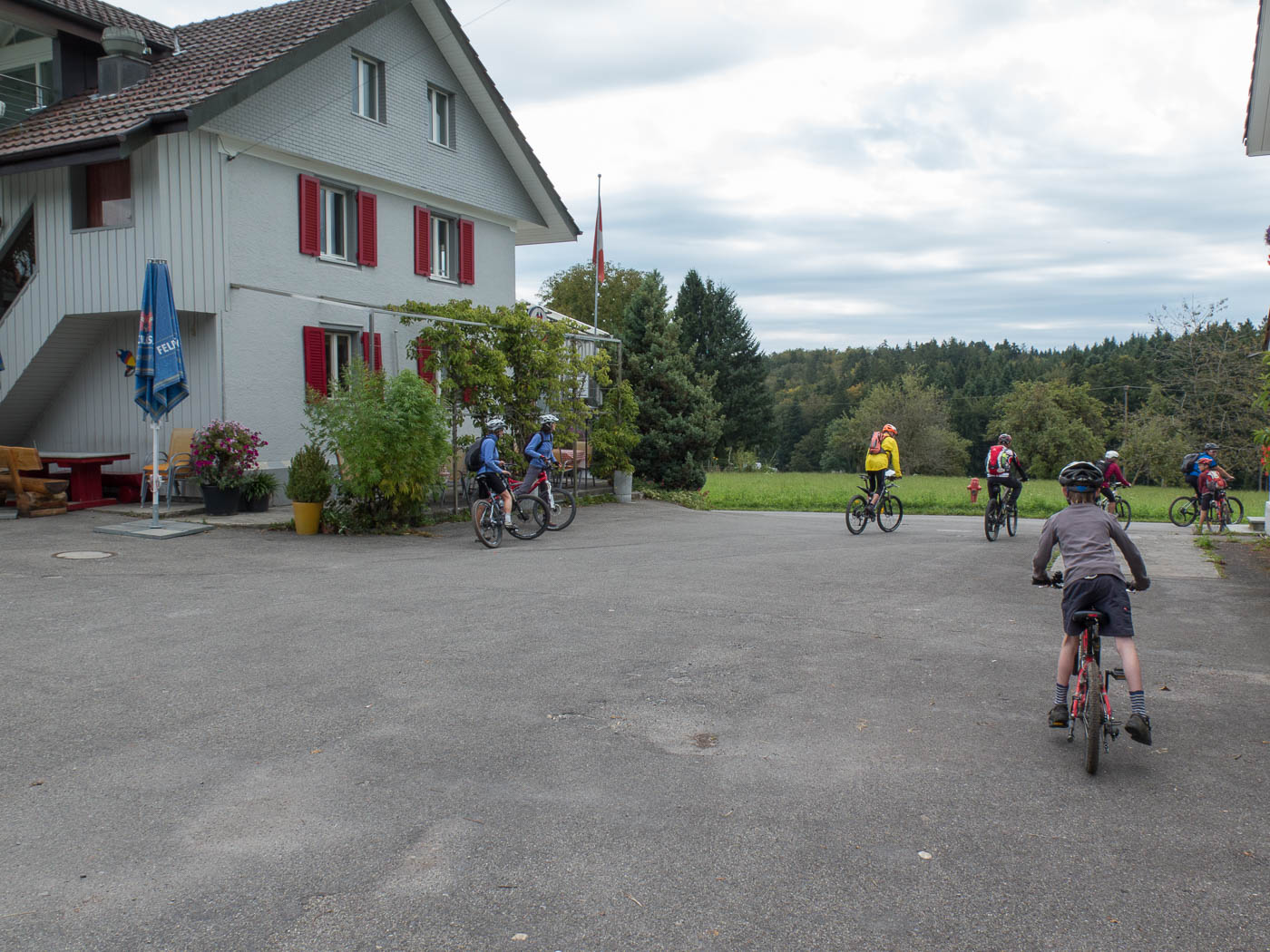 In der Bleien bei Gränichen hatte ich die Orientierung wieder. Kurz erholen, bevor es wieder hoch ging zum Wannenhof. Dort war der erste Halt geplant, und hier trafen wir auch die anderen Teilnehmer, unter anderen auch meine Familie. Nachdem wir uns wieder aufgewärmt hatten – es war noch relativ kühl, für einen August sowieso – fuhren wir in den Wald hinein (natürlich auf Wegen), um auf der anderen Seite wieder hinunterzufahren nach Hirschthal, zum Teil auch wieder auf Singletrails.
