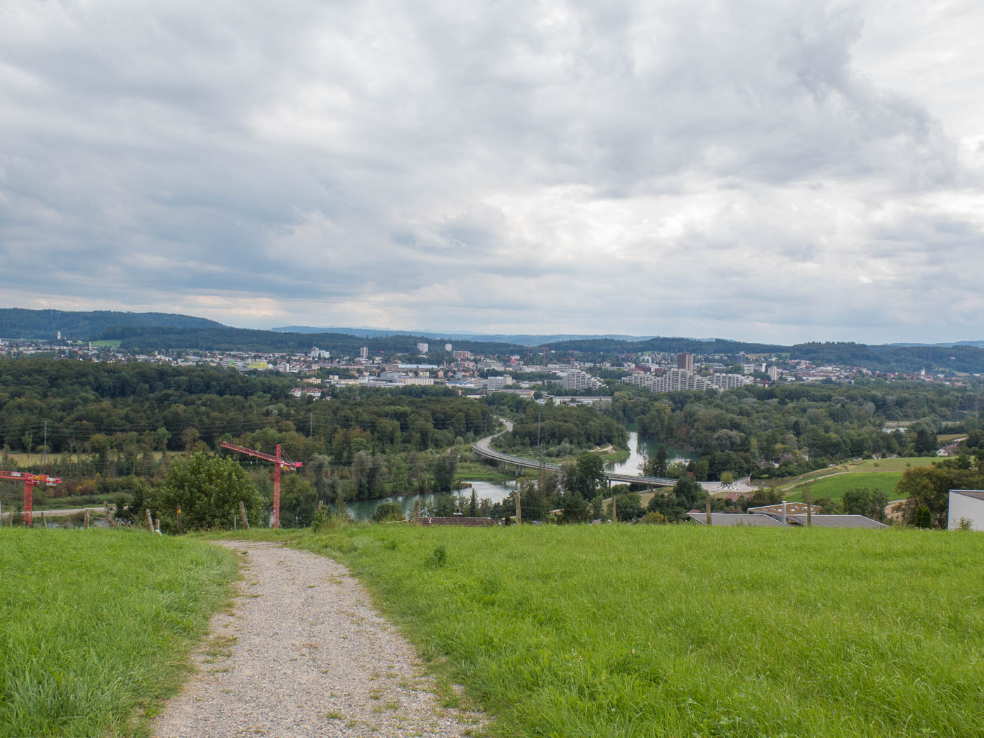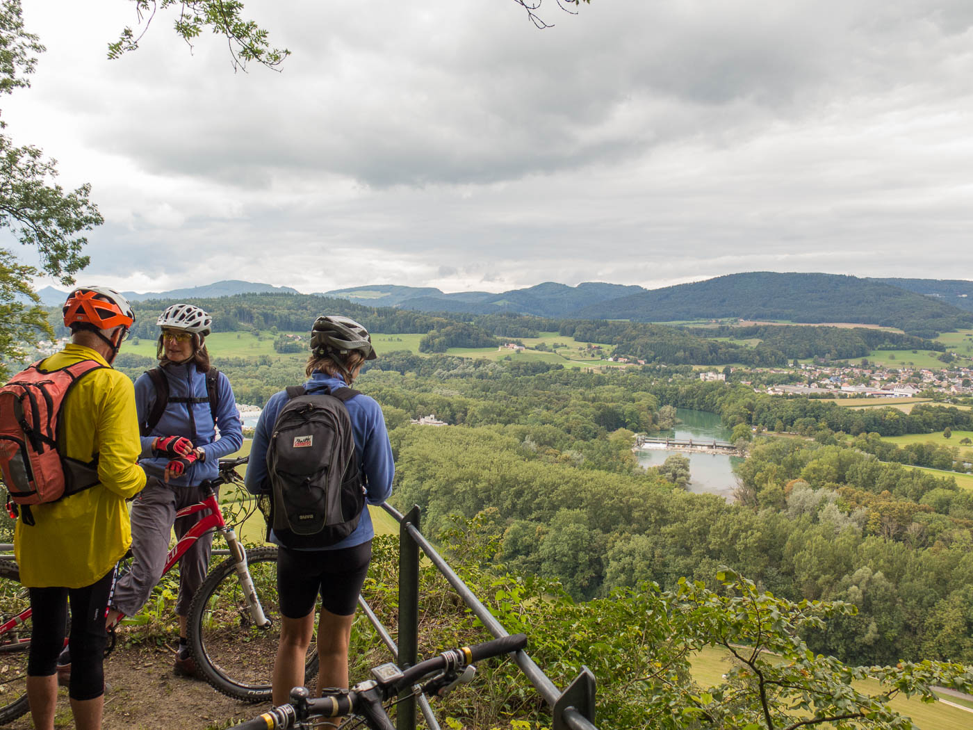 Am Ende dessen verabschiedeten wir uns von meiner Familie, weil die noch einen Termin hatten. Wir wechselten auf die andere Seite der Aare und radelten auf dem flachen Radweg. Vor Wissenbach verabschiedeten sich weitere zwei, so dass wir wieder zu viert waren. Wir nahmen nochmals einen Aufstieg in Kauf hoch zur Juraweide, einem Restaurant mit Aussicht über das Aaretal. Nach dem Kaffeehalt dort kehrten wir durch den Rohrer Schachen nach Hunzenschwil zurück.