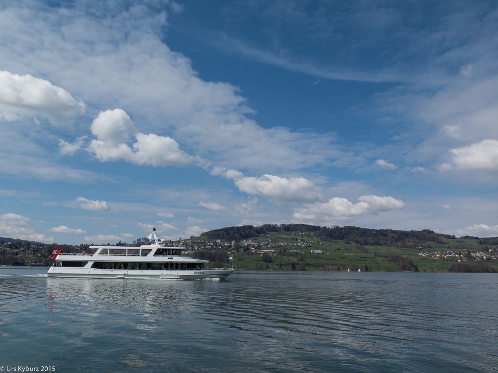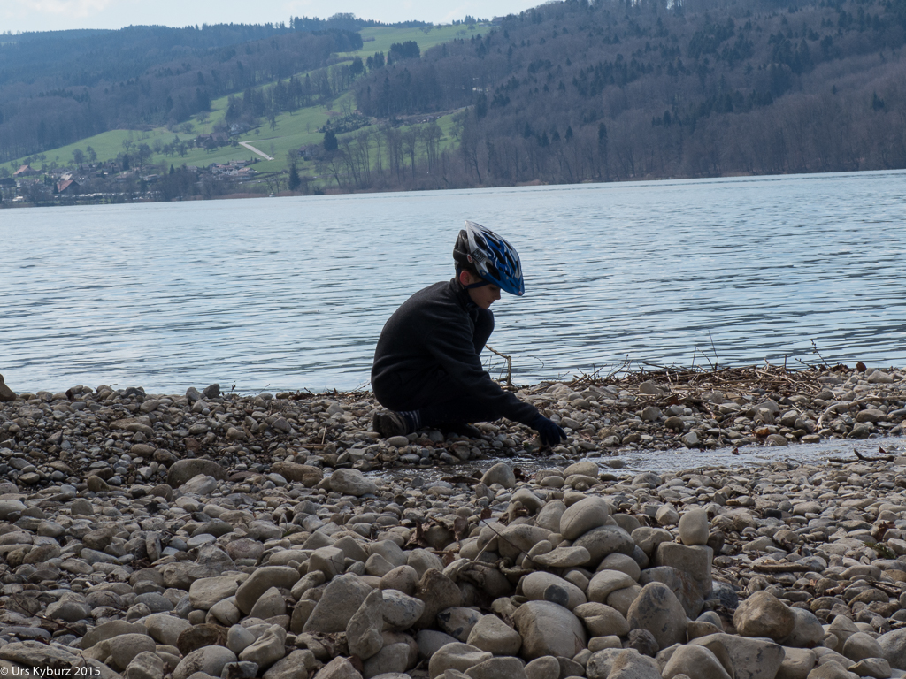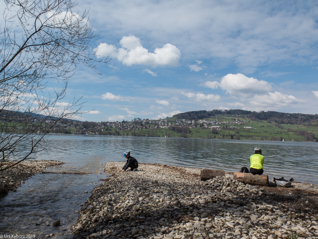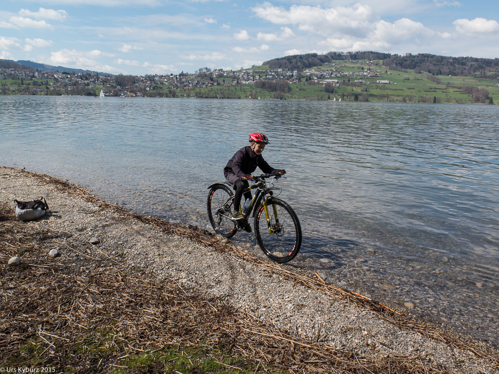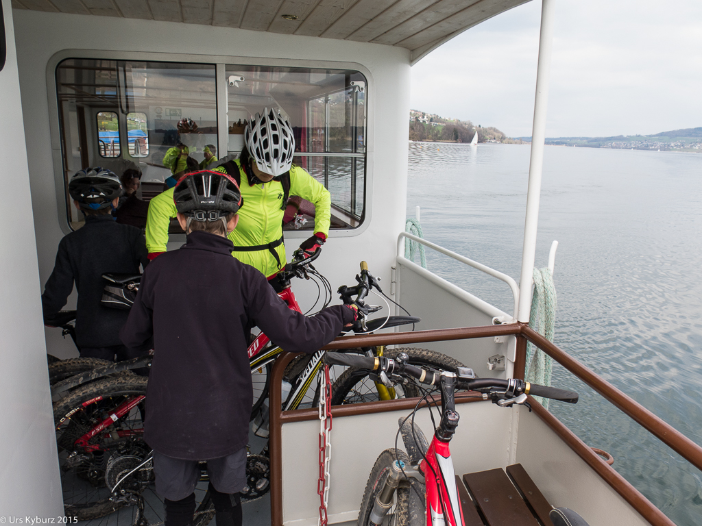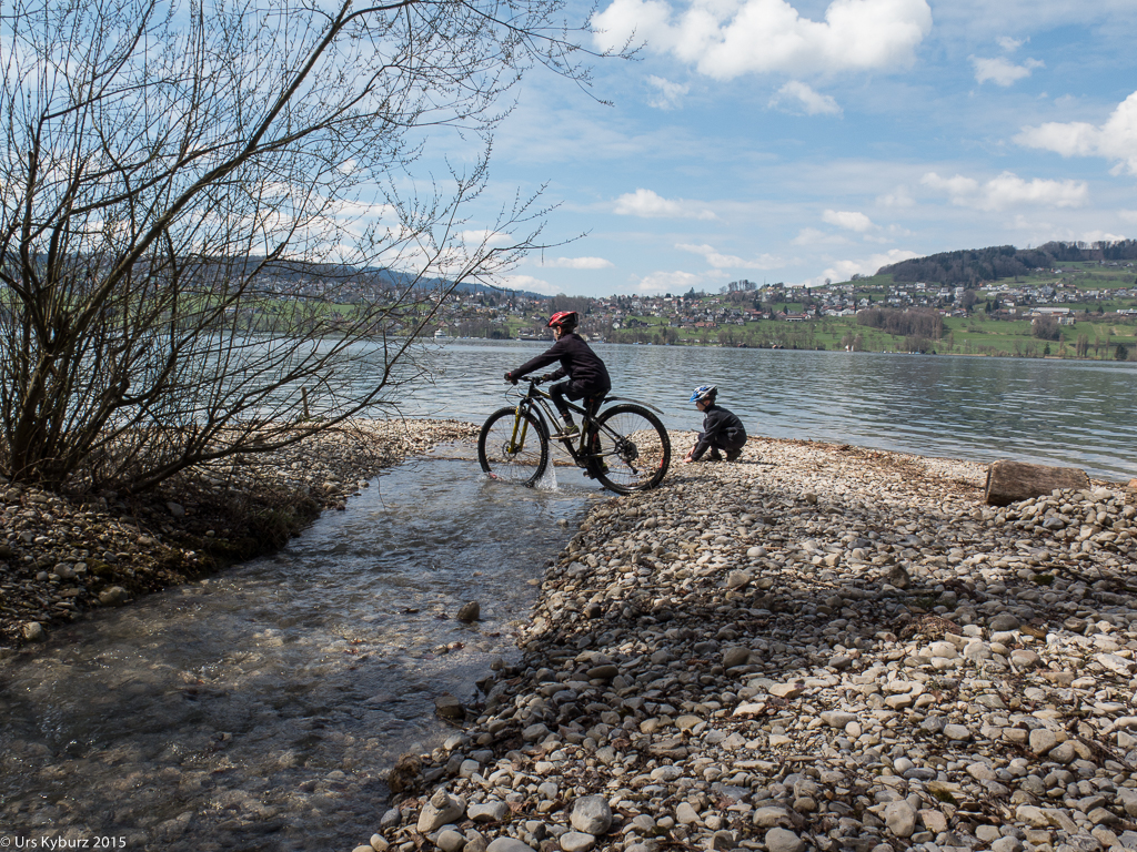 Schon mal haben wir diese Tour gemacht (Tourentipp: Velotour am Hallwilersee). Das ist jetzt schon vier Jahre her, die Kinder fahren beide selber, beide mit neuen (resp. anderen) Bikes. Der Grössere hat nun eines mit 29″-Rädern, grösser als unsere! Der Charakter ist aber immer noch gleich: Alleine unterwegs von Reinach über Schwarzenbach und Ermensee bis Aesch, von da an Slalomfahren dem See entlang zwischen den Leuten durch. Und zurück mit dem Schiff ist immer gemütlich. Nur sollte man darauf achten, nicht an einem schönen, warmen Sommertag zu fahren, dann sind die Schiffe hoffnungslos überfüllt, für Bikes kein Platz mehr. Deutlich mehr Spass macht es am Saisonanfang im April.