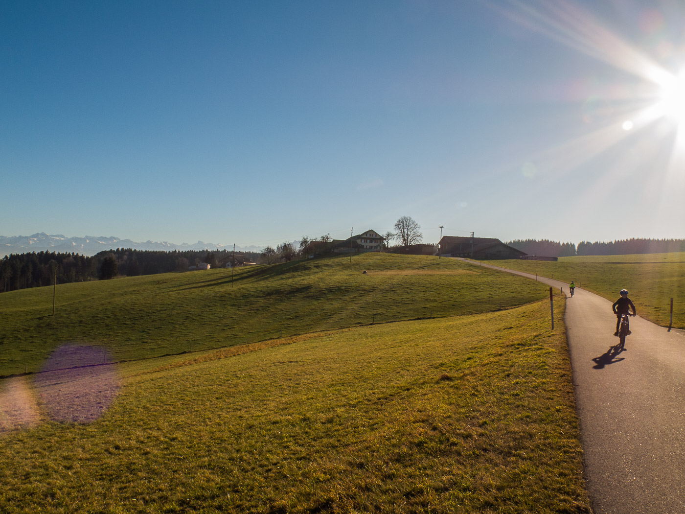 Der Dezember 2015 ist anders als sonst: Schon fast frühlingshaft warm, kein Schnee weit und breit, selbst in den Bergen hat es viel zu wenig zum Skifahren. Statt Trübsal zu blasen, schwingen wir uns halt vor der Haustüre aufs Bike und unternehmen eine Biketour in die nähere Umgebung der selbsternannten 5-Sterne-Region.
