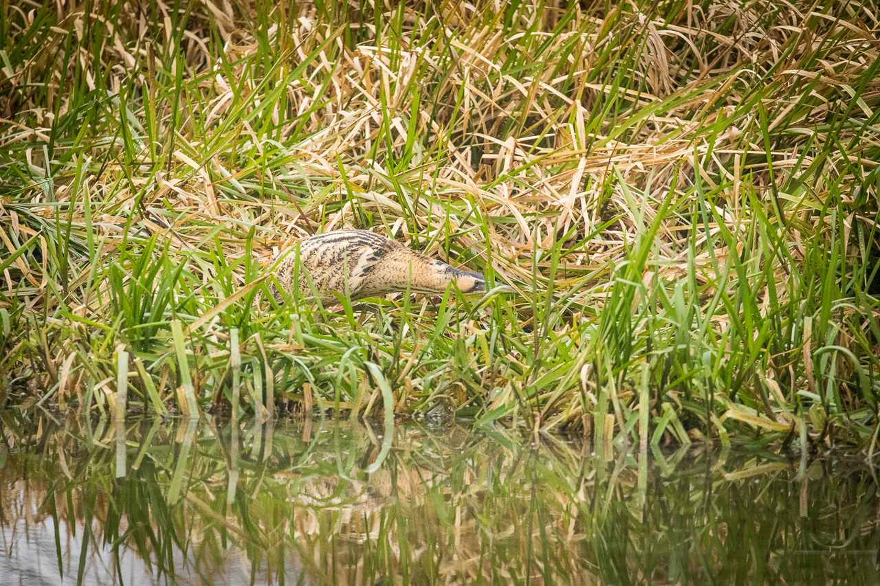 Auf dem Weg zum See tummelten sich zahlreiche Reiherenten auf der Reuss. Am Ufer hat sich der Biber ausgiebig an den Bäumen zu schaffen gemacht. Angekommen am Hide, waren bereits zwei Personen dort und starrten in die gleiche Richtung. Was sahen sie wohl? Wir guckten auch – und entdeckten zwei Rohrdommeln! Diese scheuen Vögel gehören zu den Reihern, diese beiden da wagten sich aber aus der Deckung des Schilfes und liessen sich wunderbar beobachten.