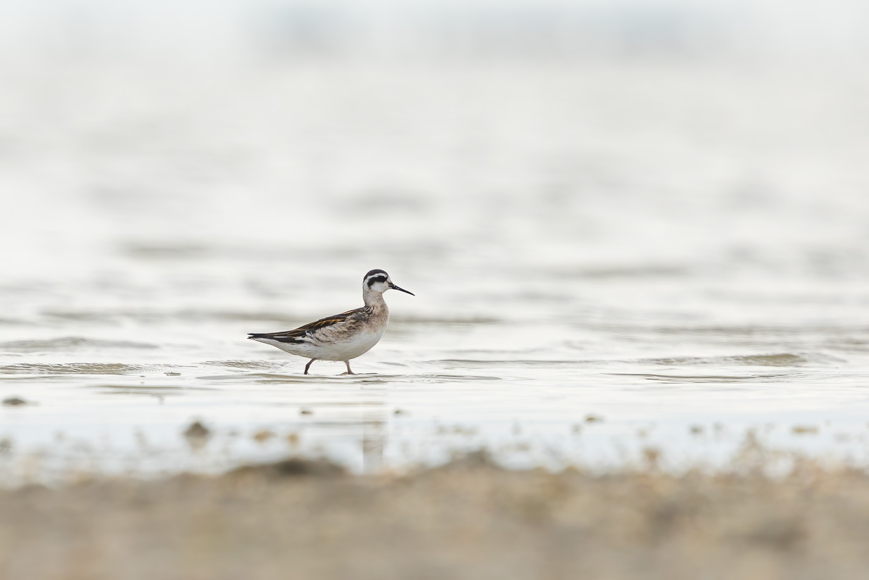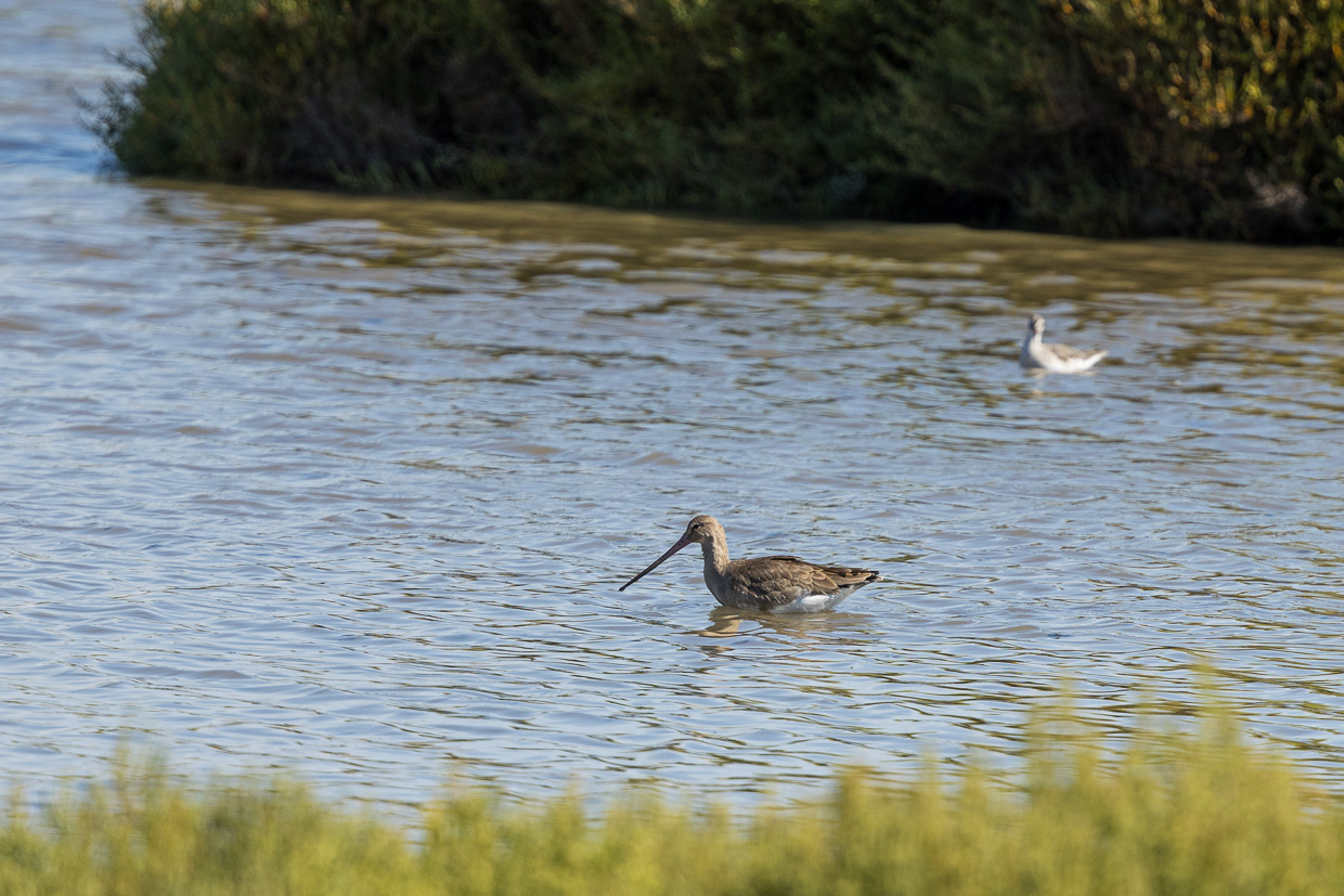 Auf einer Rinderweide (oder wie man das nennen will, Gras hatte es keines mehr, nur Stroh) hüpften gut getarnte Vögel. Ein Blick durchs Fernrohr ergab, dass es sich um Haubenlerchen handelte. Von der Strasse zweigte ein Pfad Richtung Étang ab, dem wir folgten. Nebst den Sandregenpfeifern entdeckten wir eine wahre Rarität: Ein Odinshühnchen! Diese kleine Limikole brütet im Norden von Skandinavien und Russland und zieht im Herbst aufs Arabische Meer, wo sie überwintert. Nur einzelne verirren sich westwärts.
