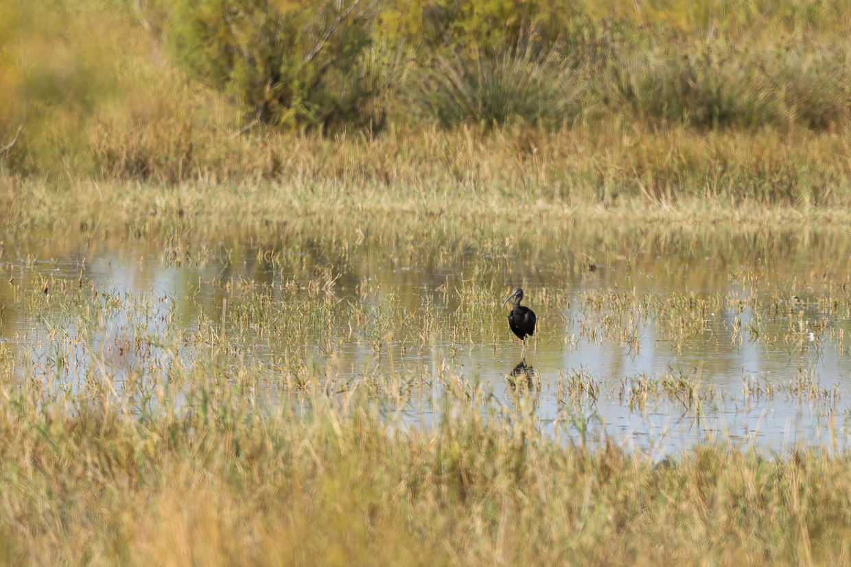 Wir gingen den gleichen Weg zurück und entdeckten einige Sichler, die im flachen Wasser nach Nahrung suchten.