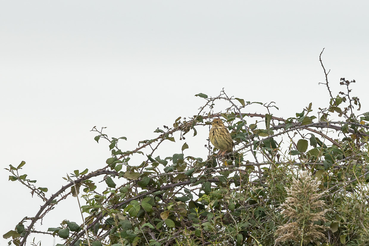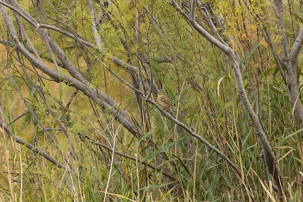Auf dem weiteren Weg, wir waren inzwischen ein gutes Stück weg vom Wasser, machten wir immer wieder spannende Beobachtungen. Am meisten freuten wir uns über die Grauammer, für uns eine Erstbeobachtung. In der Schweiz ist sie praktisch aus dem Mittelland verschwunden. Früher war sie ein häufiger Brutvogel. So viel zu „die Bauern machen genug für die Biodiversität“. In einem Kanal entdeckten wir eine Wasserralle, in einer Seitenstrasse, ziemlich weit weg, zwei Wildschweine. Auf dem Rückweg waren sie immer noch da. Und auf einem Baum entdeckten wir nochmals sechs Grauammern! Das war wieder eine gelungene Wanderung.