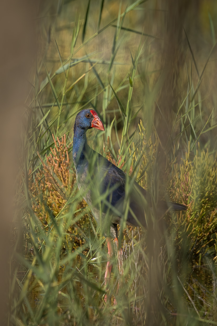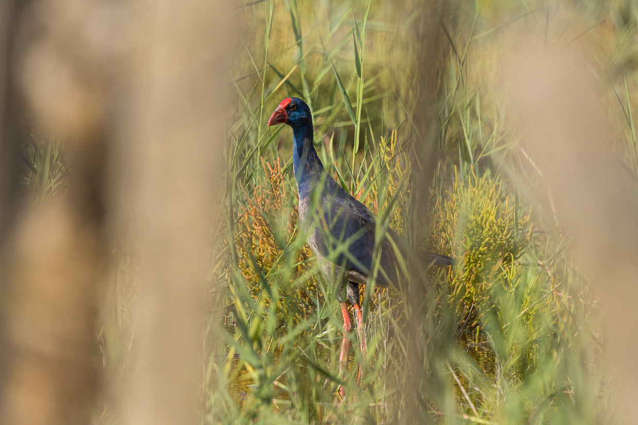 Wir unternahmen auch eine Wanderung mit leichtem Gepäck, vermeintlich. Ich hatte lediglich die Kameras vertauscht, die mit dem grossen Objektiv war im Rucksack. Es war eine Runde von 13 Kilometern, aber sehr viel der Strasse entlang. Ich hatte die Tour auf Komoot gefunden, halte sie aber nicht für lohnenswert, wir hätten sicher einen anderen Weg gesucht. Und trotzdem hatten wir auch hier wieder ein besonderes Erlebnis, wir fanden ein sehr seltenes Purpurhuhn.