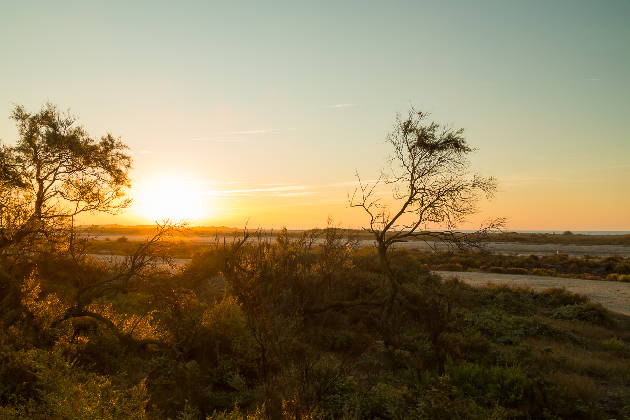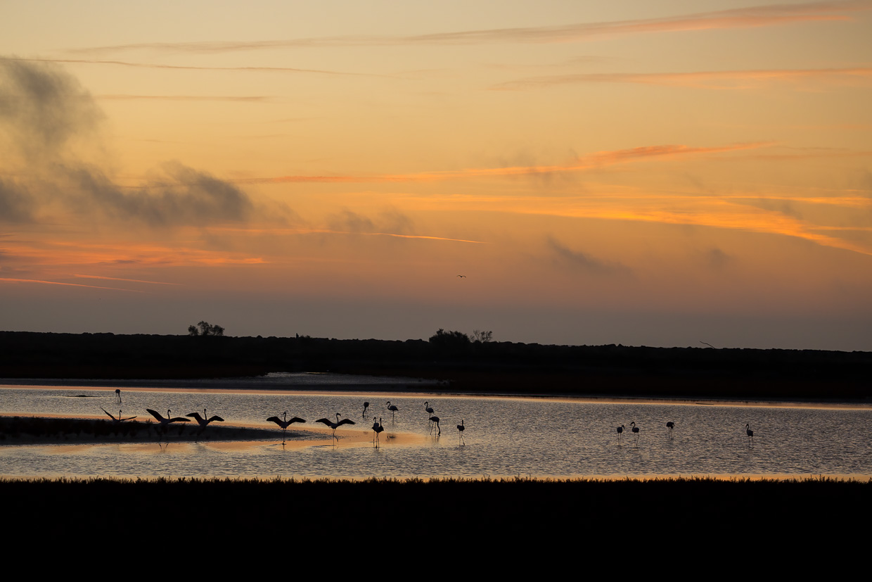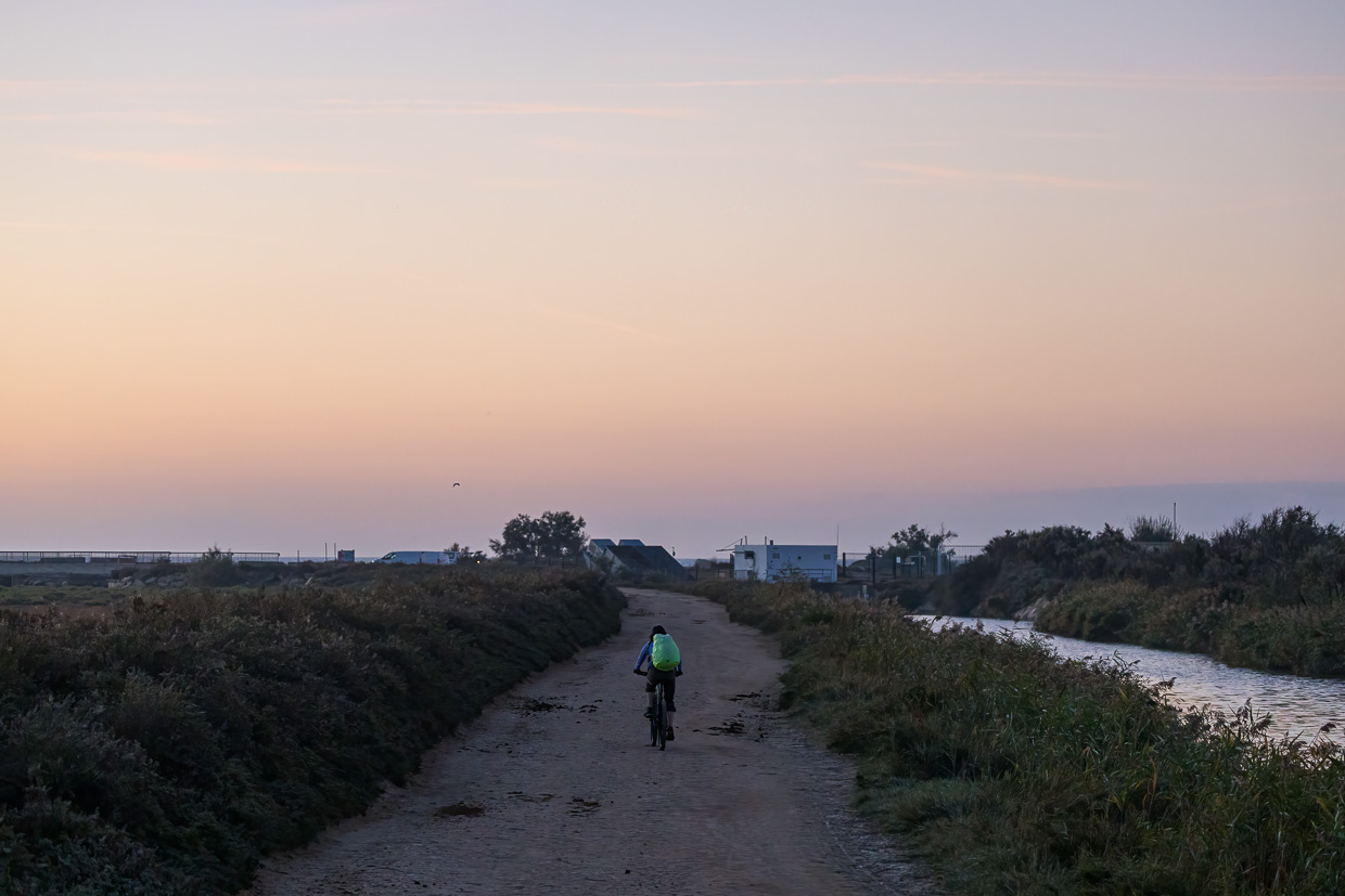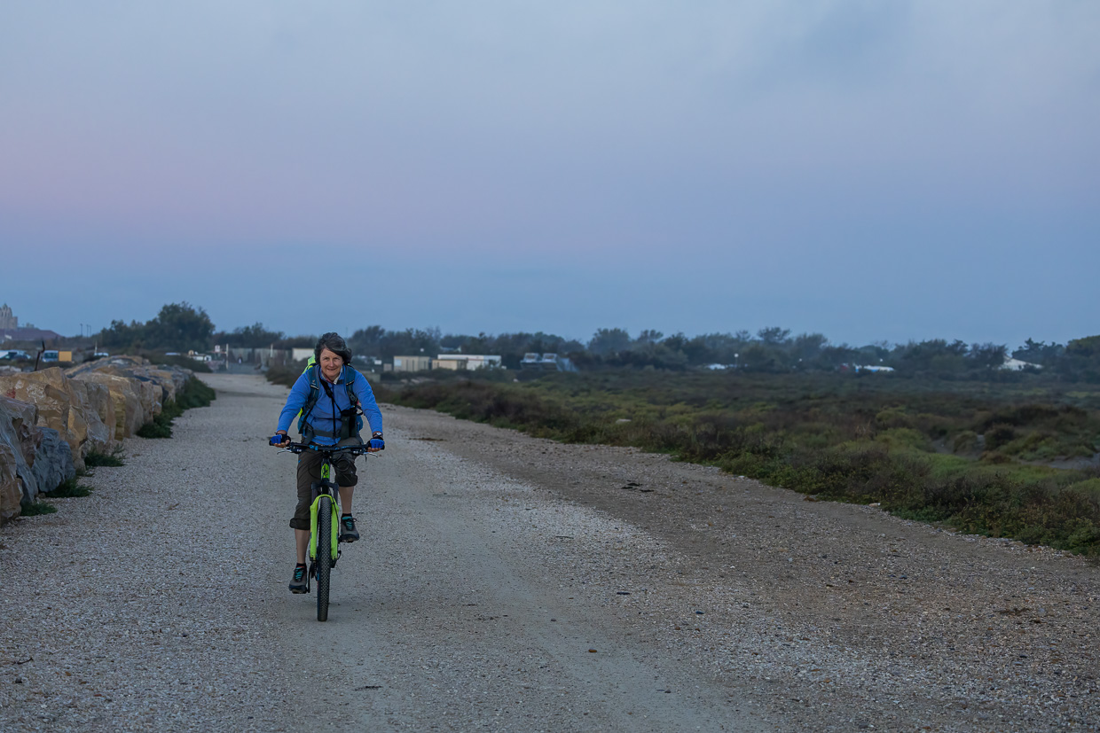 Ein weiteres spannendes Gebiet war der Küstenstreifen zum Leuchtturm Phare de la Gacholle. Dieses ist allerdings sehr weitläufig, weshalb wir Mountainbikes mieteten. Zum Glück war die Strecke total flach, irgendwo hinunterfahren hätte ich damit nicht gewollt, die Bremsen funktionierten kaum. Wir starteten noch im Dunkeln und konnten dem Tag beim Erwachen zuschauen, ebenso den Flamingos.