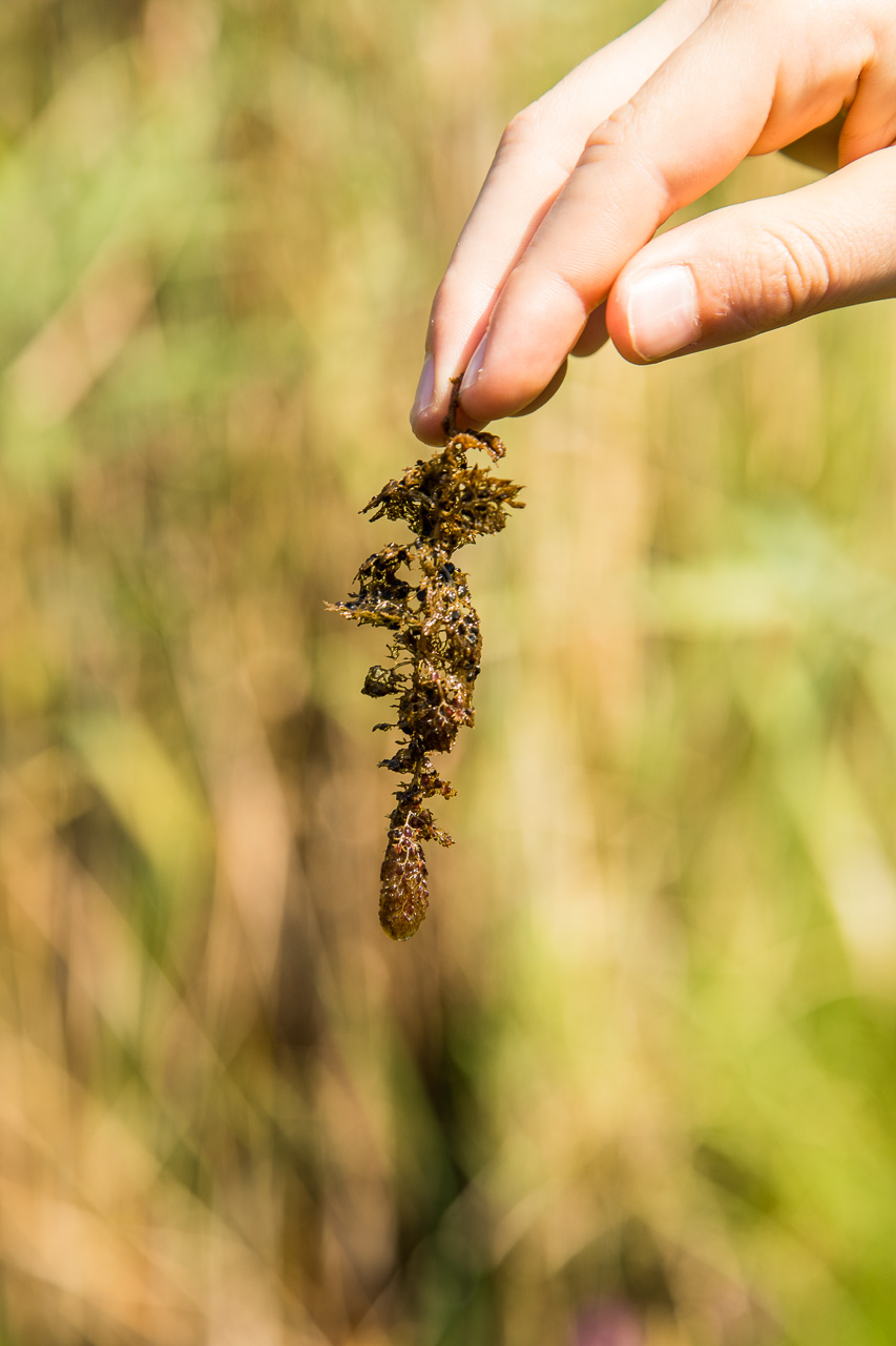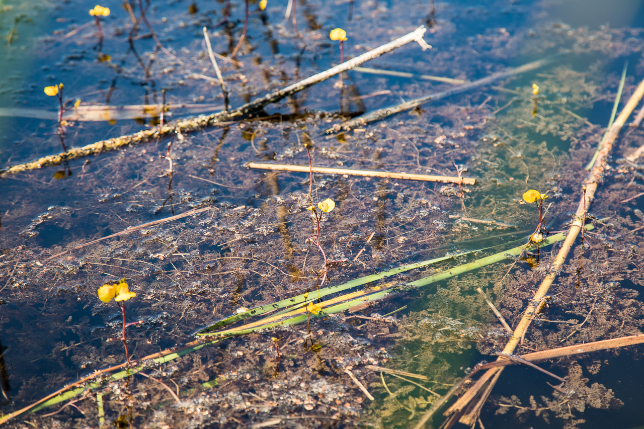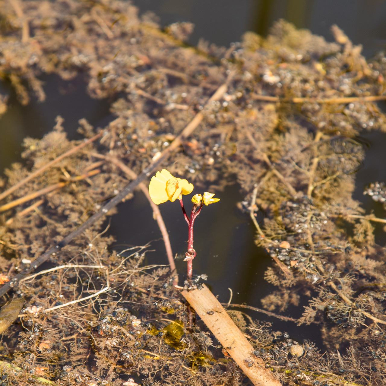 In einem Teich in den Auen entdecken wir den Wasserschlauch, eine Wasserpflanze. Sie sieht so unschuldig aus, aber sie hat es faustdick hinter den Ohren, wenn sie welche hätte. Sie ist nämlich fleischfressend. An den Blättern befinden sich Blasen, gespannte Fallen. Wenn nun ein Wasserfloh die Tasthaare darauf berührt, klappt ein Deckel nach innen auf und saugt das Tier hinein. Es ist eine der schnellsten Bewegungen im Pflanzenreich und dauert nur gerade 2 Millisekunden.