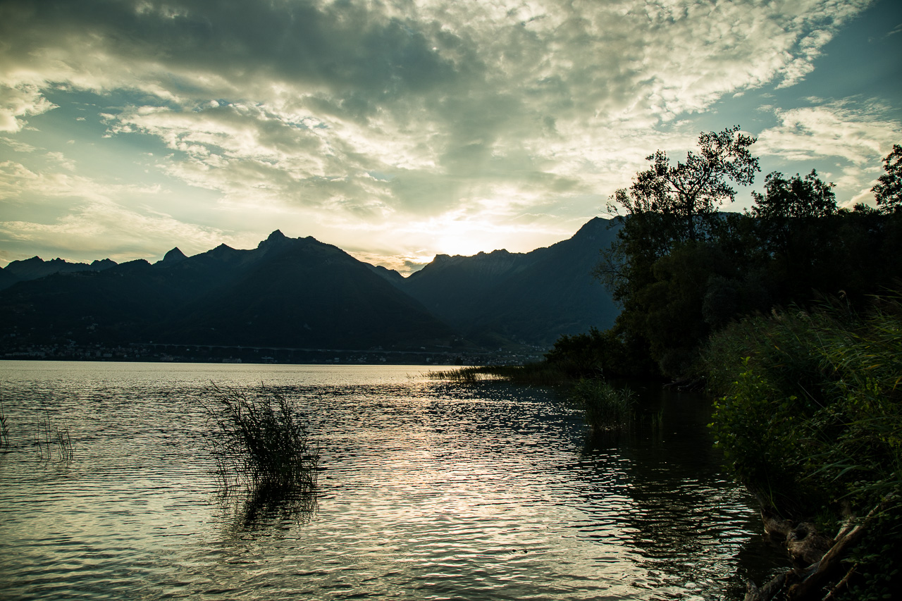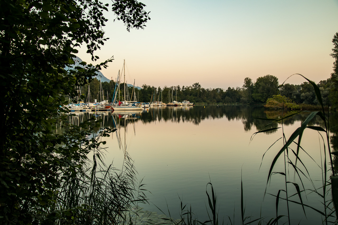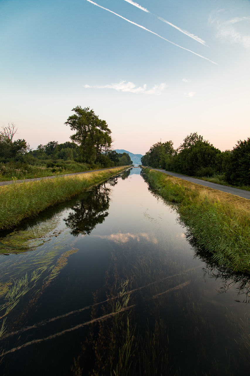 Ein Morgen- oder Abendspaziergang lohnt sich fast immer, es gibt fantastische Sonnenuntergänge und Morgenstimmungen. Also ich vermisse das Meer überhaupt nicht. Wir sind jeweils Richtung Le Bouveret zum Kanal spaziert.