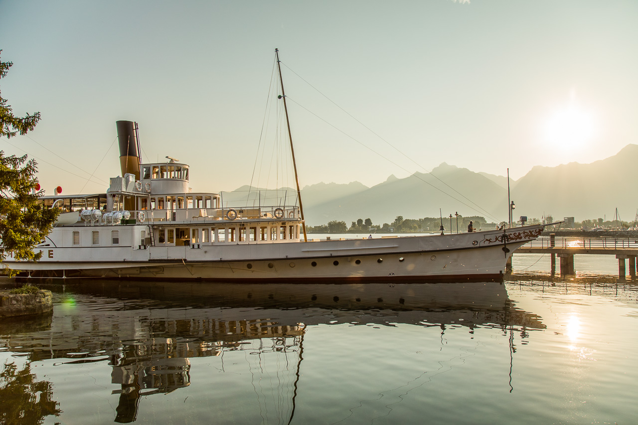 Nun ist es nicht mehr weit nach Lausanne. In Ouchy machen wir nochmals Pause, bevor wir steil zum Bahnhof hoch fahren (Lausanne ist bekannt für seine Hanglage) und fahren mit dem Zug zurück nach Villeneuve.