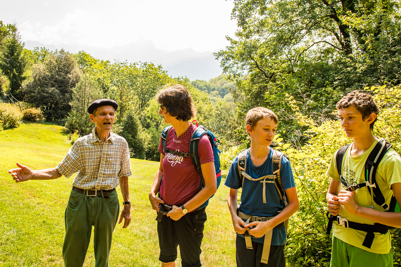 In der beliebten Frühlingsserie „Wunderland Schweiz“ mit Nik Hartmann besuchte er ebenfalls das Chablais und diesen Garten. Der alte Mann, der diesen Garten erschaffen hat, beeindruckte uns, so dass wir ihn auch besuchen wollten. Wir streiften durch den Garten, bestaunten die Blumen aus allen Herren Länder. Leider waren schon viele verblüht. Als wir an einem kleinen Häuschen vorbei gehen, öffnet sich die Tür und Herr Aviolat, so heisst der Gärtner, tritt heraus und begrüsst uns, als hätte er uns erwartet.