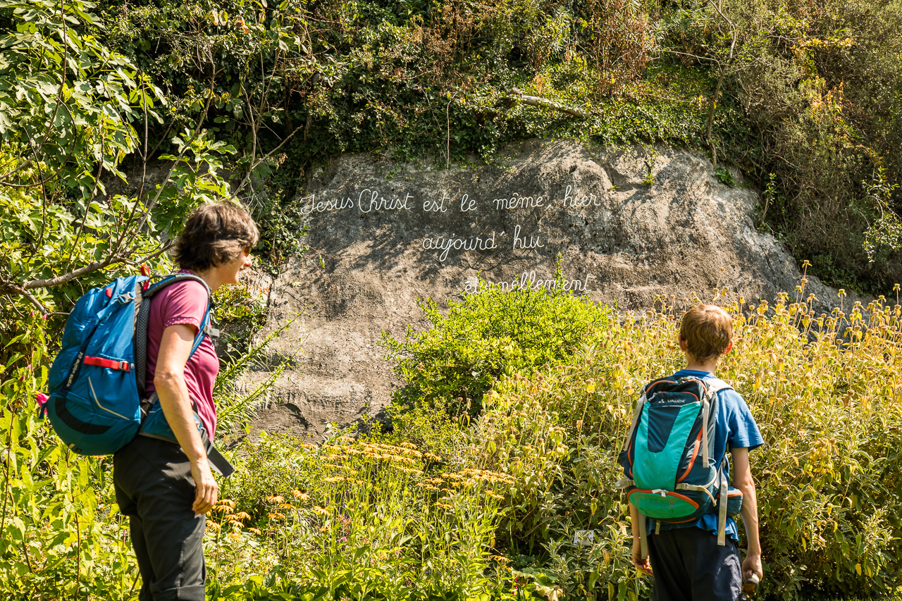 Eine Radioreporterin soll ihn einmal als „jardinier du Seigneur“, als Gärtner des Herrn, vorgestellt haben. Seither nennt er sich stolz selber so, er ist sehr gläubig, wie auch die verschiedenen Sprüche im Garten verraten. Ein herzensguter Mensch, der extrem bescheiden lebt. Er führt uns persönlich durch den Garten und erklärt uns dies und das. Schon sind die nächsten Besucher da, er verabschiedet uns und widmet sich den anderen.