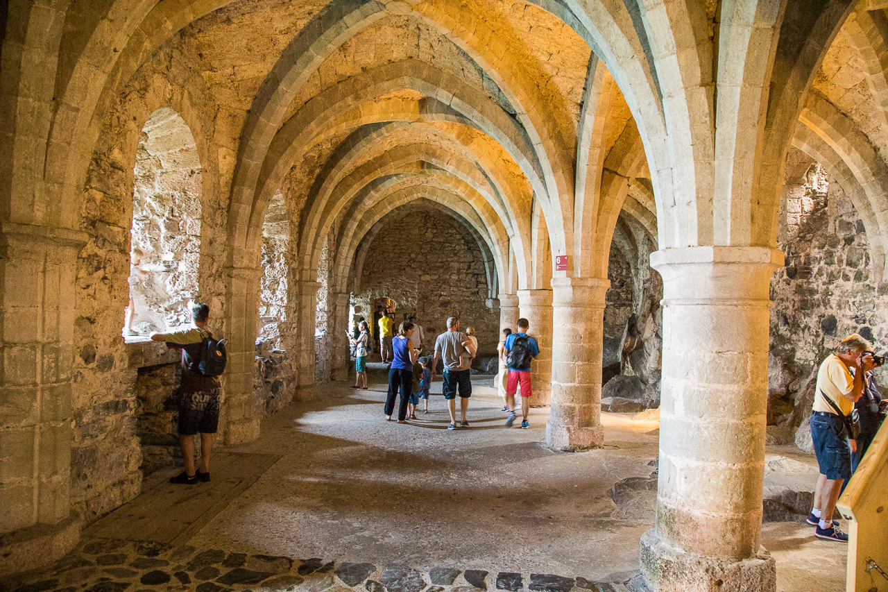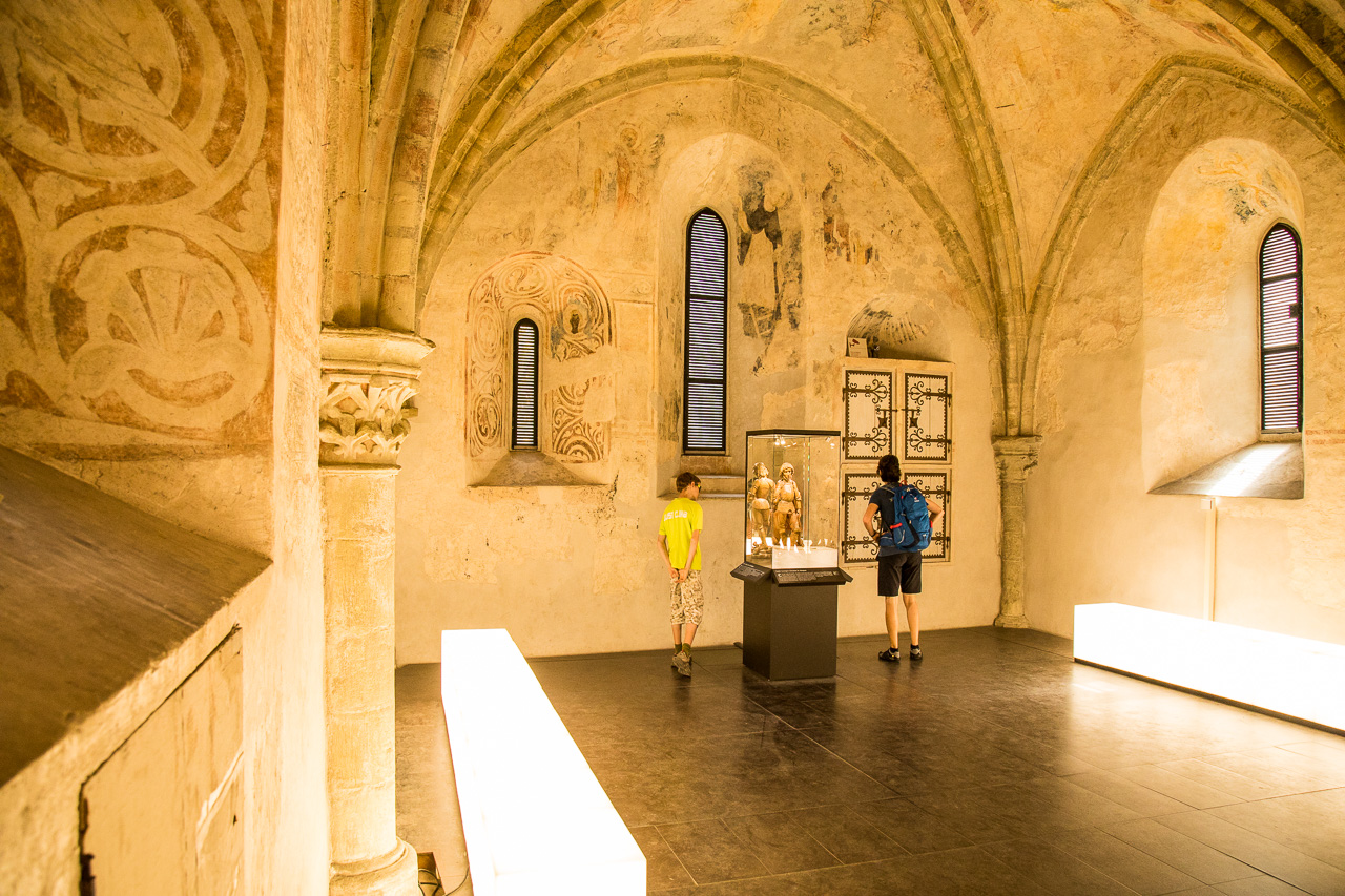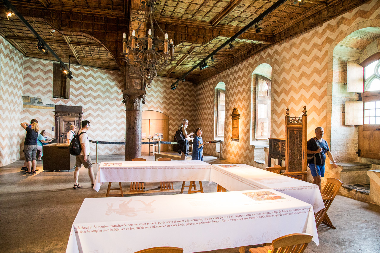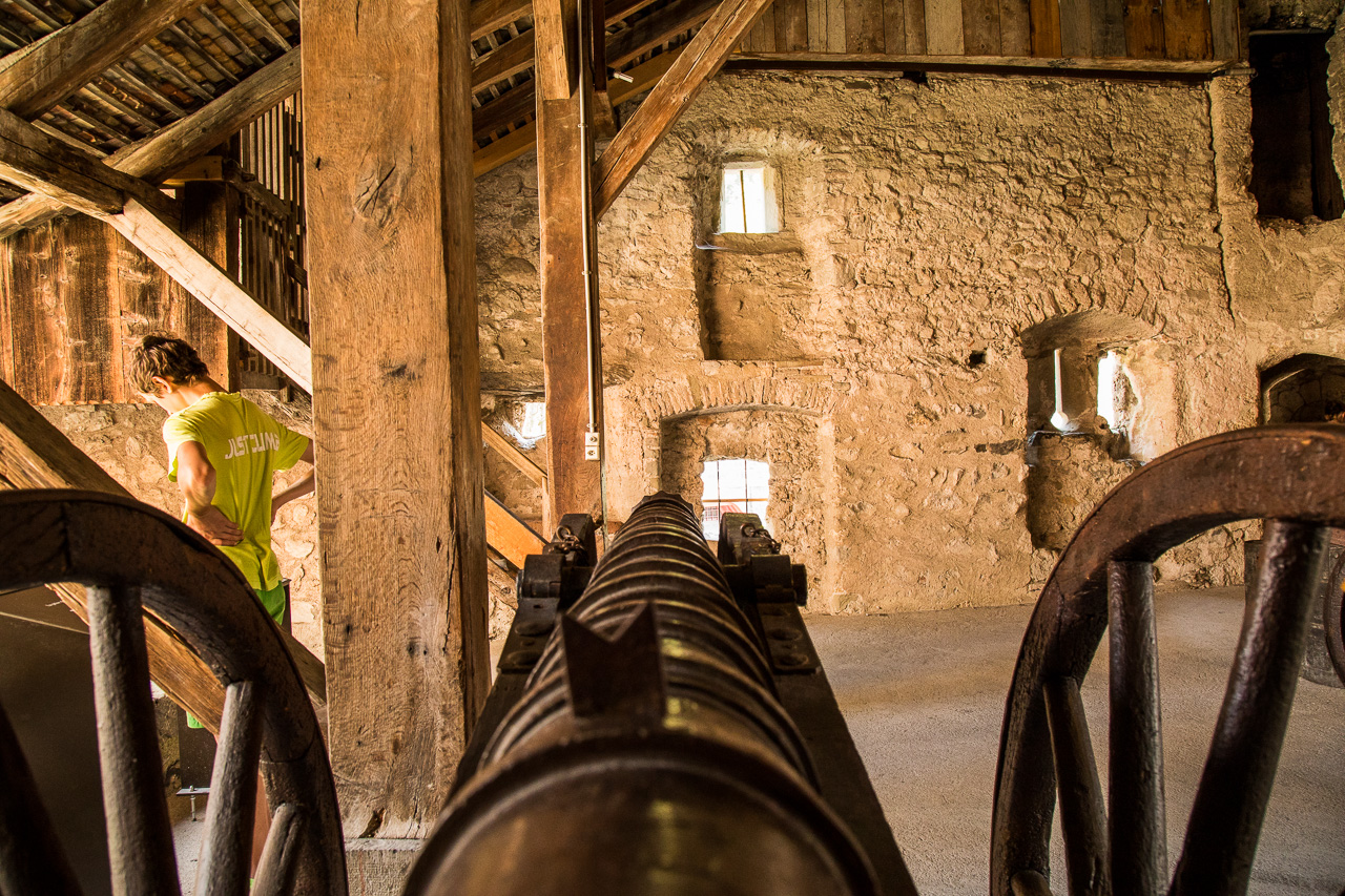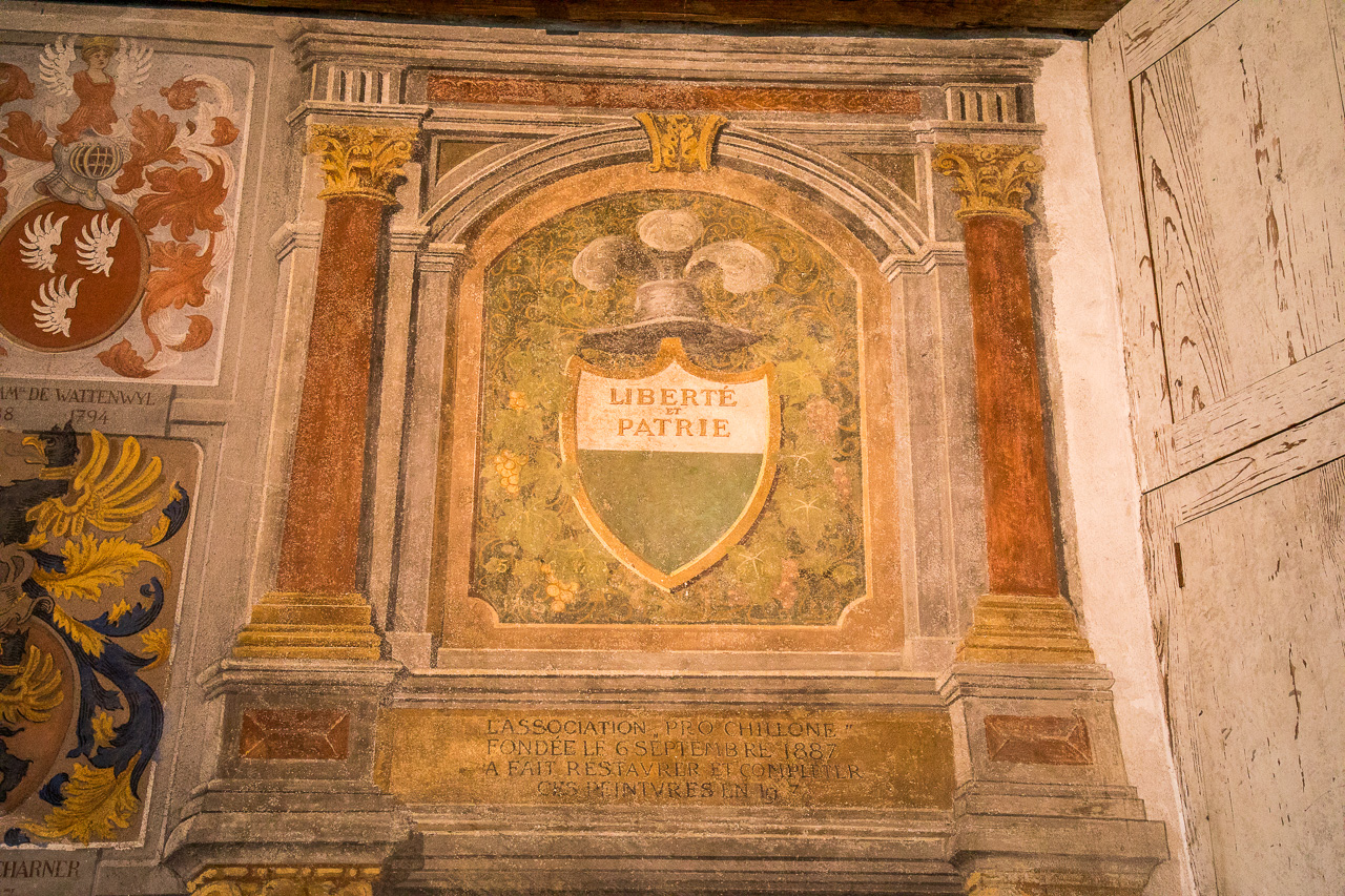 Das Schloss ist natürlich ein Touristenmagnet, trotzdem wagten wir uns hinein. Es sind viele Artefakte aus den verschiedenen Zeiten zu sehen. Die Geschichte des Schlosses ist in drei Epochen eingeteilt: Die Savoyer Zeit vom 12. Jahrhundert bis 1536, die Berner Zeit von 1536 bis 1798, und die Waadtländer Zeit von 1798 bis heute. Das Schloss Chillon war nur eines von vielen Schlössern der Savoyer, die wie Nomaden von Schloss zu Schloss zogen und so ihren Regierungsgeschäften nachgingen. 1536 übernahmen die Berner fast kampflos das Schloss, das 1798 an die Waadtländer ging, als die Berner während den Napoleonischen Kriegen zurückgedrängt wurden und die Waadtländer die Chance nutzten, sich vom Berner Joch zu befreien.