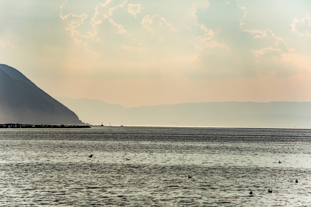 Wegen der zu erwartenden Hitze starten wir um halb sieben, noch vor Sonnenaufgang. Es ist noch alles ruhig. Beim Hafen Chaux Rossa frühstücken wir, ehe wir weiterfahren nach Le Bouveret. Vorher hören wir aber flötende Rufe: Pirole? Wir halten an, nehmen das Fernglas hervor und suchen die Bäume ab. Da! Ein gelber Vogel fliegt umher, ein Pirol! Sofort will jeder hindurchschauen. Es sind mehrere, flattern in den Bäumen umher. Silvan wollte schon immer diese schönen Vögel sehen, jetzt strahlt er übers ganze Gesicht. Im Hafen Le Bouveret tritt eben die Sonne hinter den Bergen hervor. Eine wunderbare, entspannte Stimmung herrscht, es ist noch ruhig, nur wenige Leute sind unterwegs. Und dazu einen Kaffee, was will man mehr.