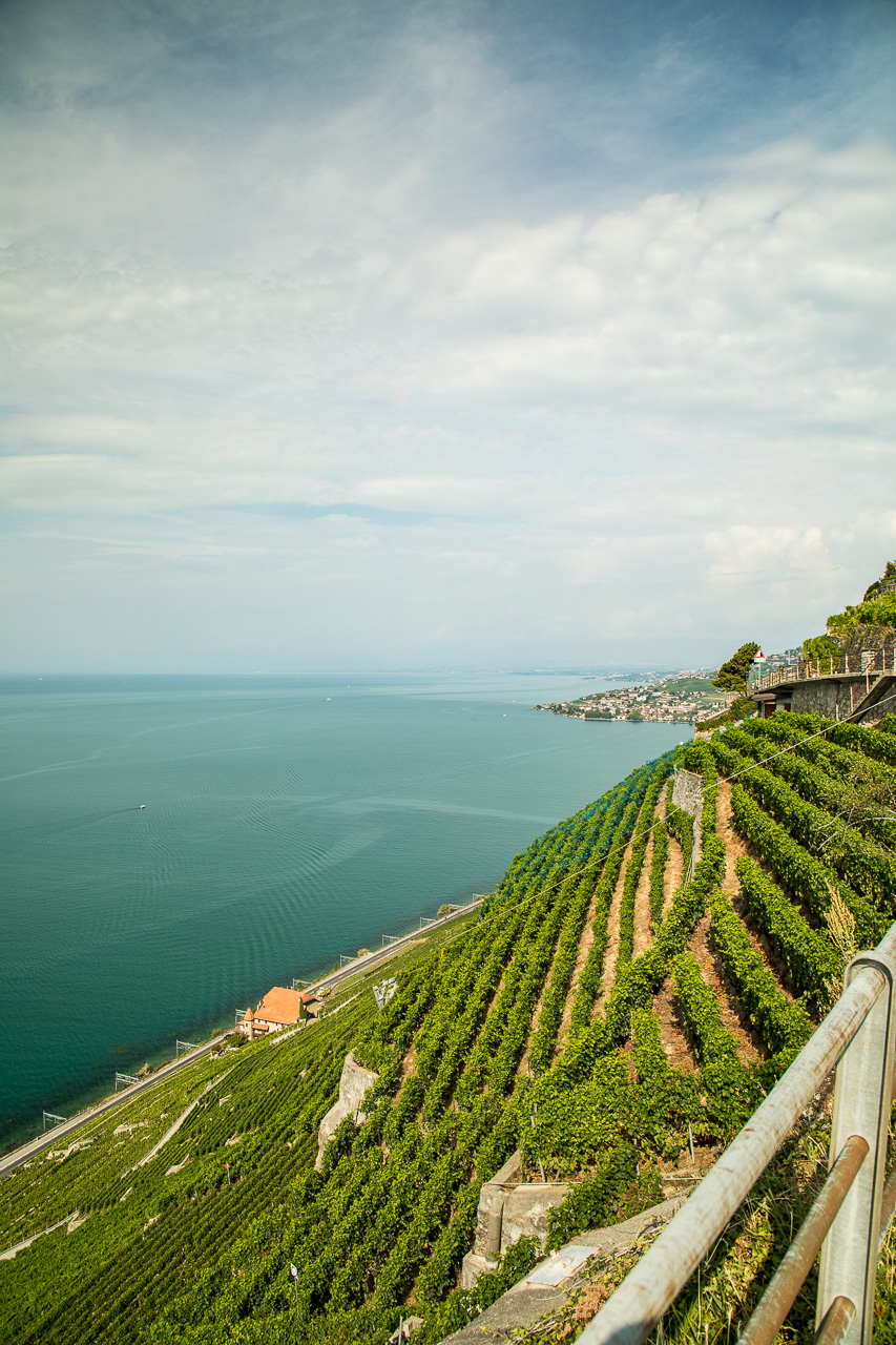 Die Lavaux ist, als Ganzes betrachtet, schon schön, im Detail hat es mir aber zuviel Beton. Ich hatte mehr Natur erwartet, mit Natursteinmauern, Blumen, Tieren. Der Verlauf der Route auf der Strasse in der zweiten Streckenhälfte trägt auch nicht gerade zu einem besseren Bild bei. Vielleicht ist es im Herbst schöner, wenn die Blätter farbig sind und das Licht sanfter ist, oder man sollte abends vor Sonnenuntergang durch die Rebberge flanieren.