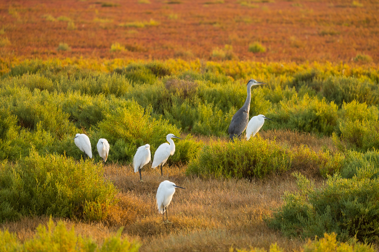 Sieht man bei uns in der Schweiz einen Seidenreiher, ist man entzückt, so selten ist er hier. In der Camargue ist er allgegenwärtig, da tritt er zum Teil gleich im Schwarm auf.