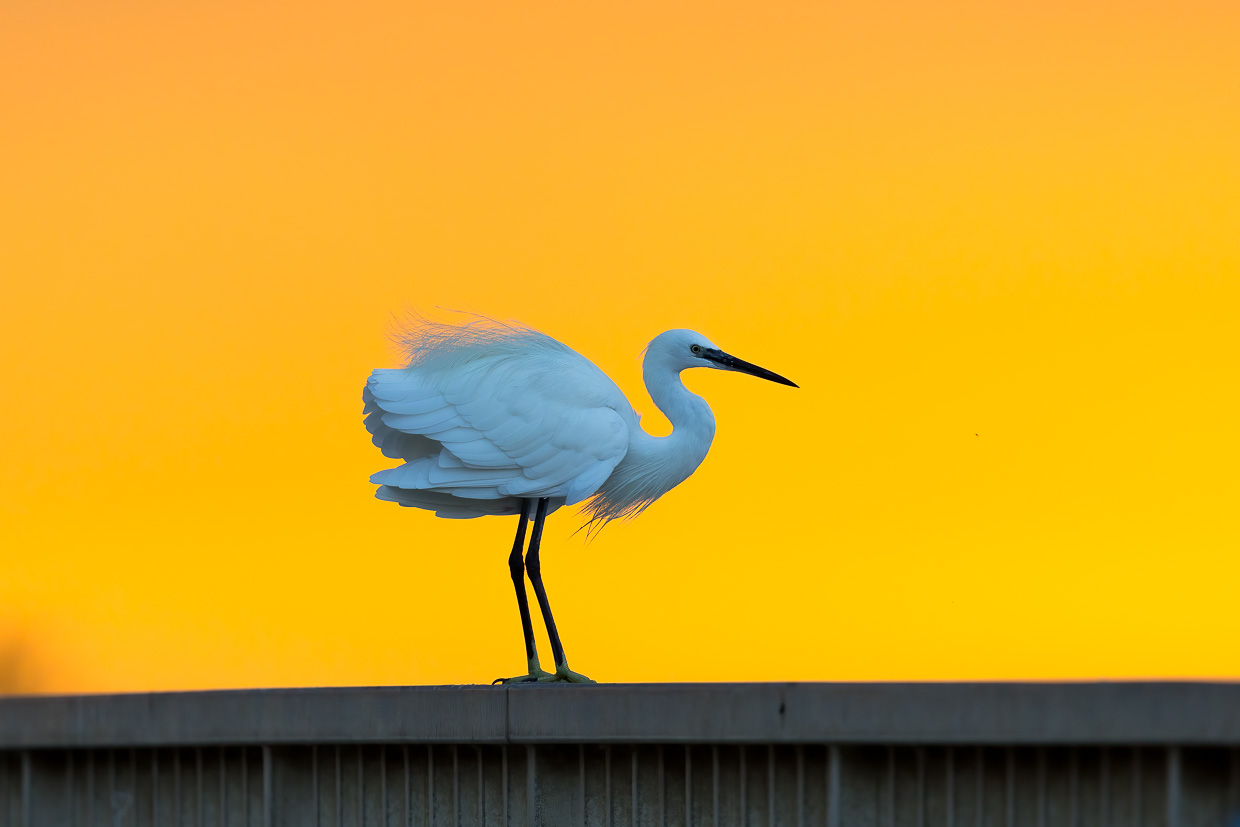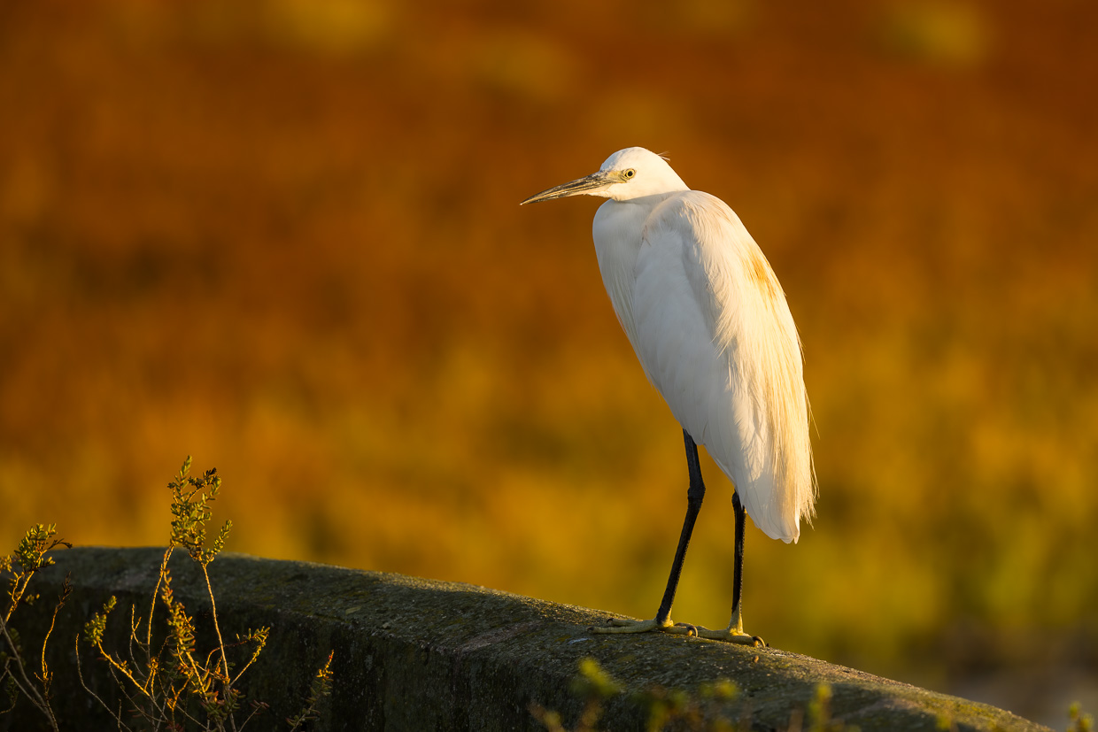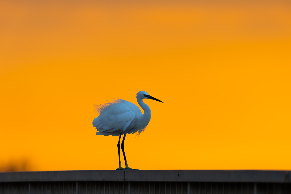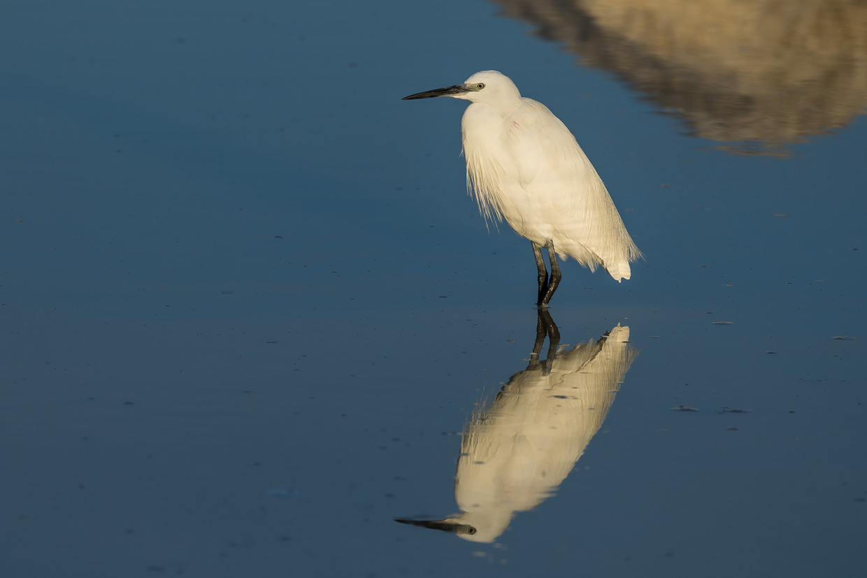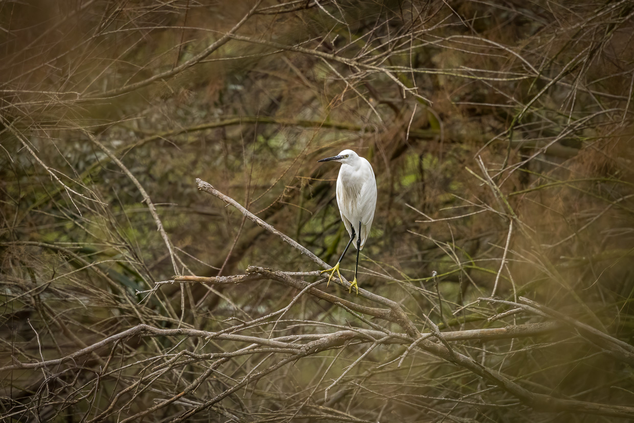 Wäre da nicht der andere Vogel, könnte man glatt sagen, er sei der Charaktervogel der Camargue: Der Seidenreiher. Überall sieht man ihn, den Reiher in seinem auffälligen weissen, seidenen Kleid.