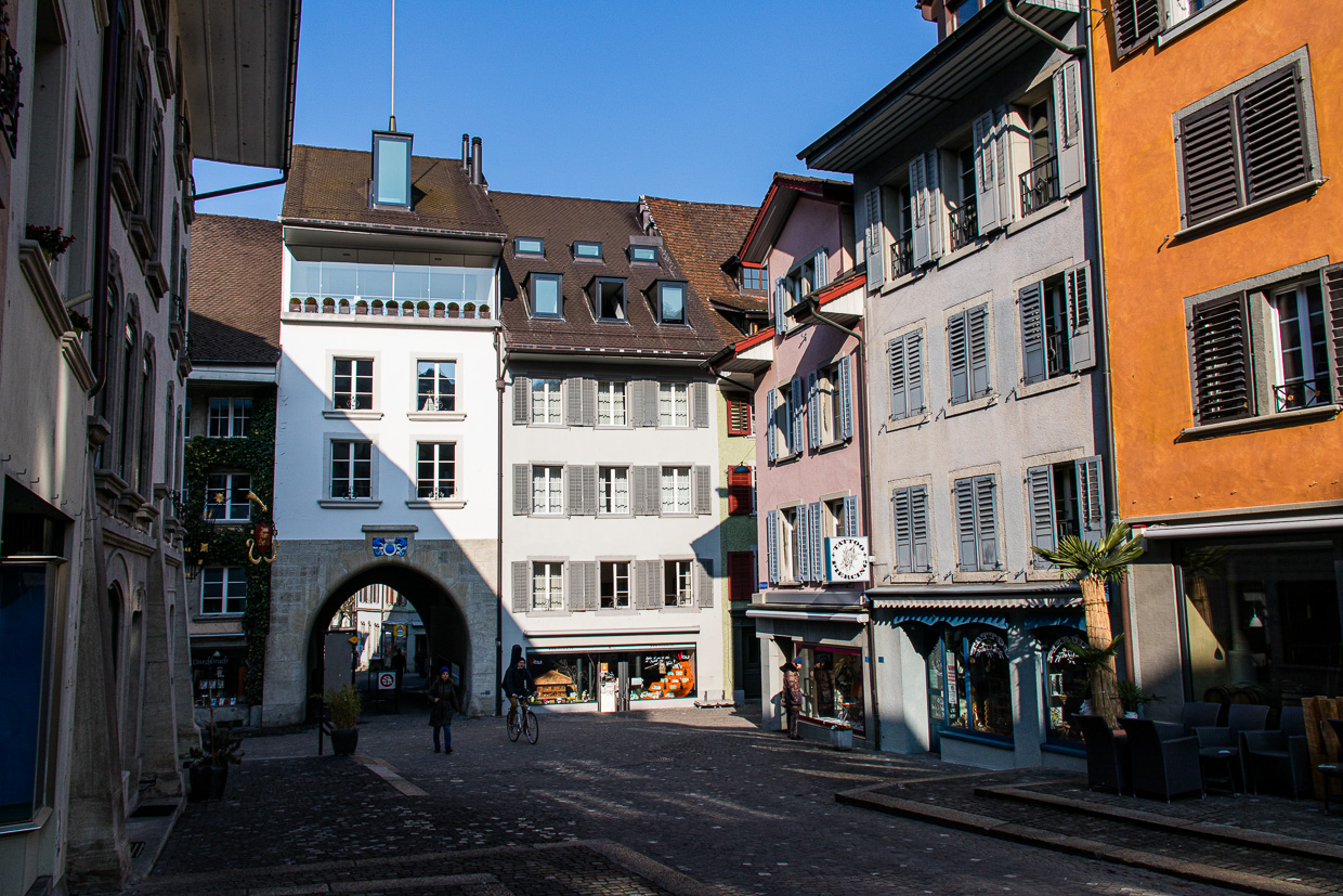 Da ist aber eine riesige Baustelle und verschiedene Verbotstafeln. Sind die nun gültig oder sind die nur dort deponiert? Der Postautofahrer, der mir entgegen kommt, weist mich mit nachdrücklichen Gesten darauf hin, dass die gültig sind. Fahre ich halt nach Brugg hinein. Ein Fehler, wie sich herausstellt. Ich lande auf der Hauptstrasse durch Brugg, flüchte mich in die Fussgängerzone, wo ich einen Moment durchatmen kann. Ich muss aber nach Windisch weiter, das geht offenbar nur auf der Hauptstrasse.