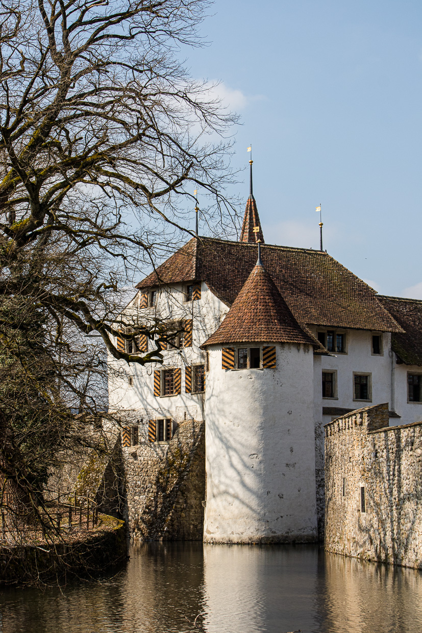 Ich finde aber auf den Weg zurück, fahre nun dem Aabach entlang das Seetal aufwärts zum Schloss Hallwyl, dem schönsten Wasserschloss der Schweiz. Entgegen der Geschichte der anderen Schlösser war diese sehr konstant. Im späten 12. Jahrhundert wurde von den Herren von Hallwyl ein Wohnturm errichtet, der nach und nach zu einer Burg ausgebaut wurde. Trotz der Eroberung des Aargaus durch die Berner blieb die Burg im Besitz der Familie und wurde zum Schloss ausgebaut. Erst 1994 wurde es als Schenkung dem Kanton Aargau übertragen und ist heute öffentlich zugänglich.