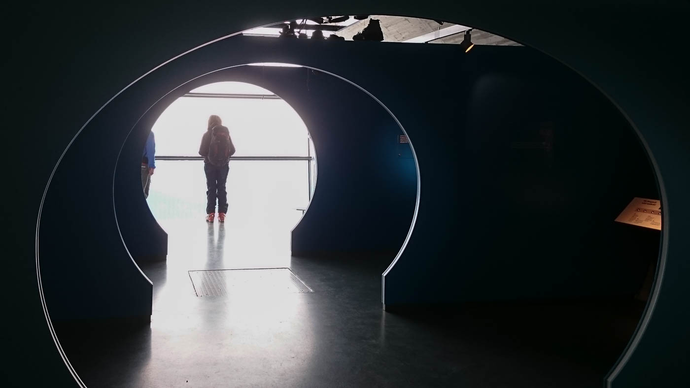 Das Dammkar im Karwendel ist nicht wirklich eine Skitour, sondern eine Skiabfahrt. Mit der eindrücklichen Seilbahn fuhren wir hoch, nachdem wir eine Haftungsausschlusserklärung unterschrieben hatten. Ein Gebäude in eigenartiger Bauweise weckte unser Interesse. Wir fanden darin eine Ausstellung über den Lebensraum Alpen. Ein grosses Panoramafenster ermöglichte einen grossartigen Ausblick über die ganze Region. Erst im Nachhinein las ich, dass das Gebäude einem Fernrohr nachempfunden wurde.